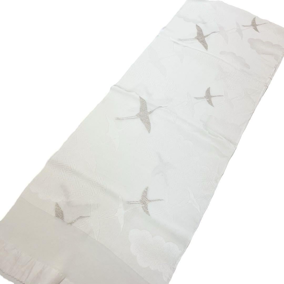 和装小物 帯揚げ 正絹 綸子 鶴 金糸 礼装 乳白色 C-5435 着物 きもの kimono 和服 和装 中古 リサイクル着物 【送料無料】