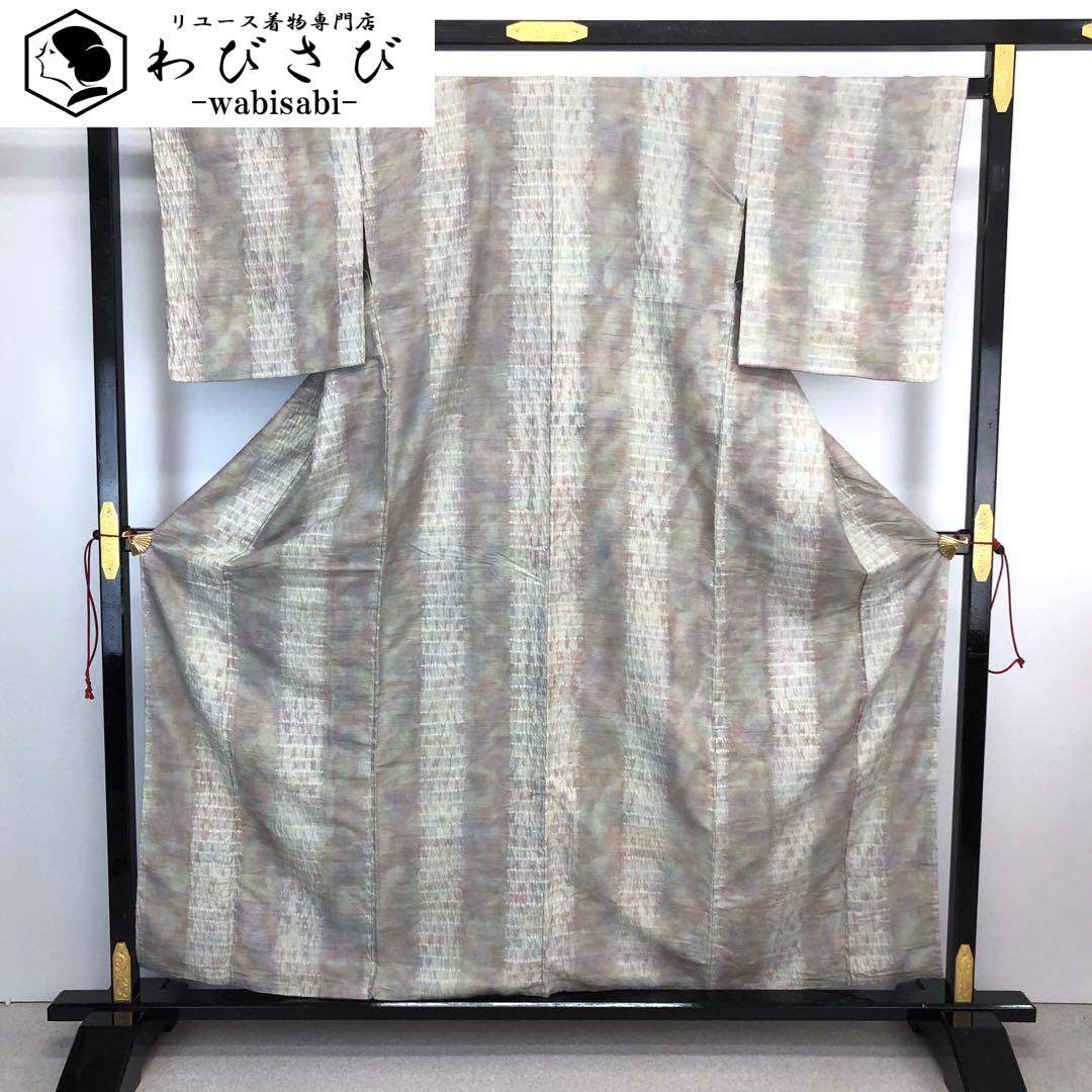 紬着物 雰囲気の良い絞り柄 縦縞模様 K-4340 着物 きもの kimono 和服 和装 中古 リサイクル着物 【送料無料】