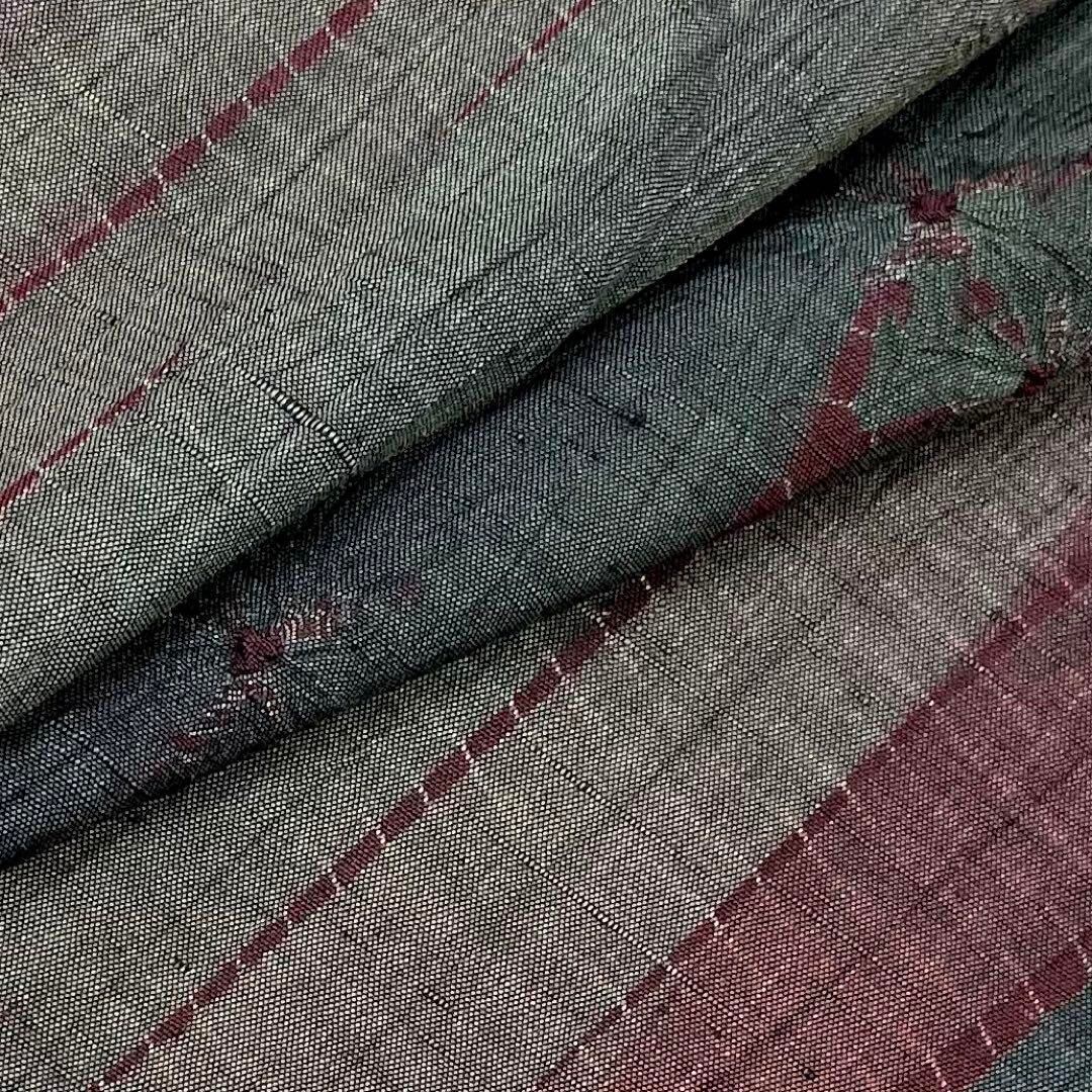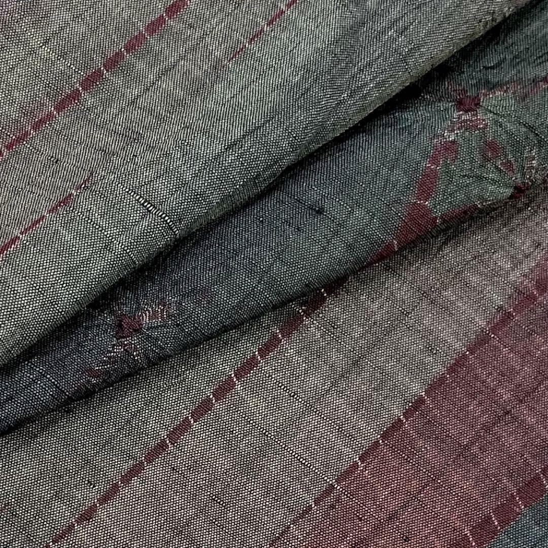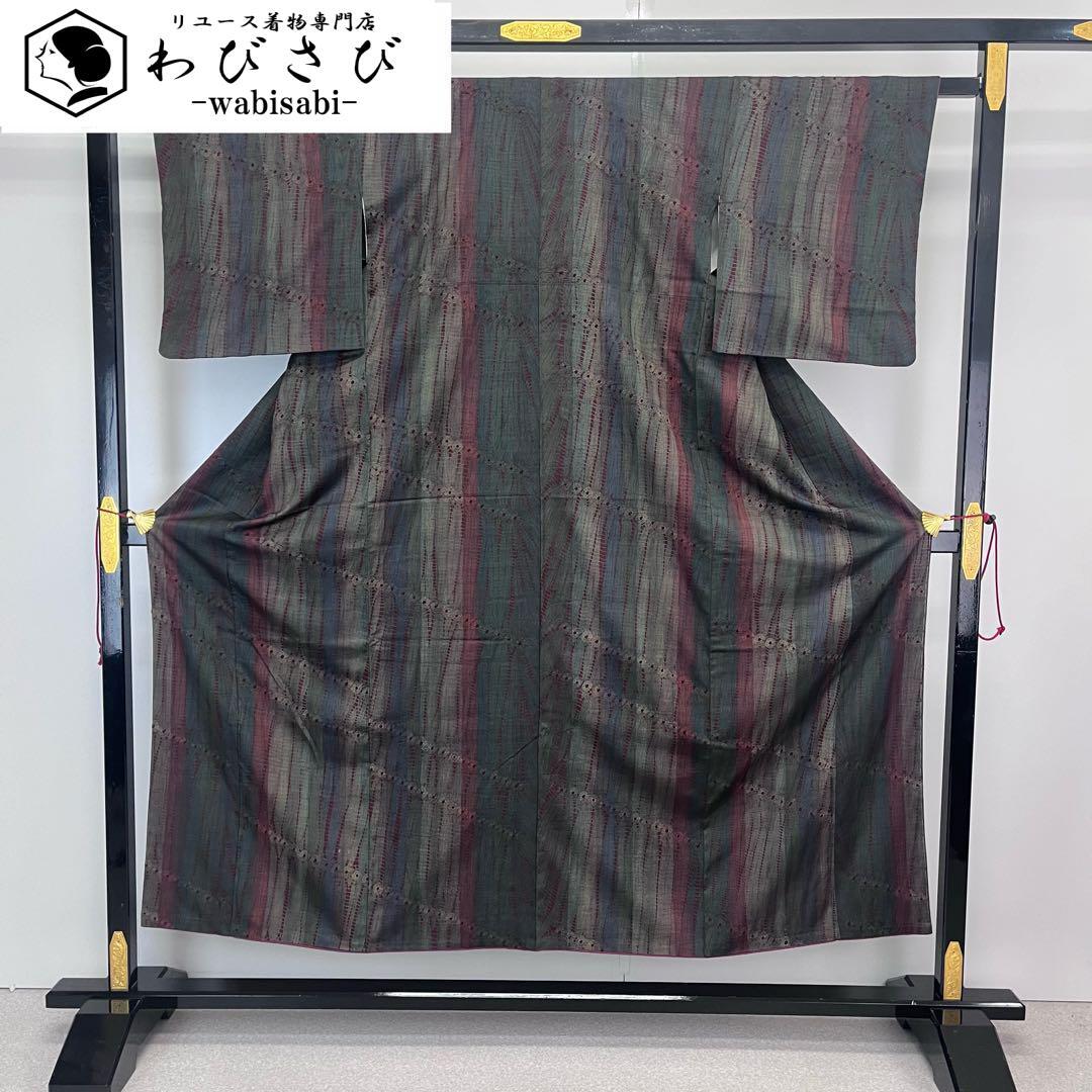 鉄色ベースの雰囲気の良い絞り柄、縦縞模様に蜘蛛絞りがデザインされた素敵なお品でございます。