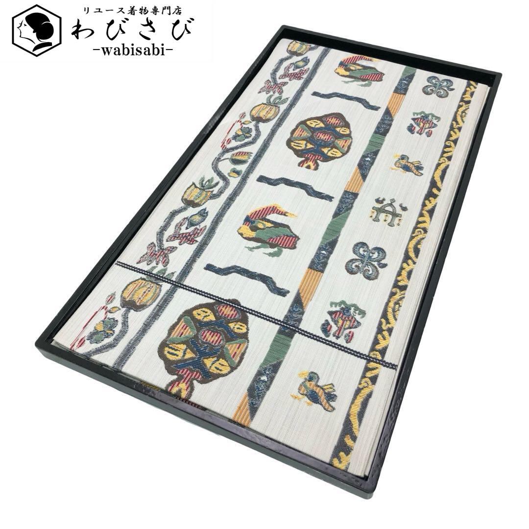 袋帯 西陣 和楽 抽象柄 鳥 花 木 雲井鼠色 O-4607 着物 きもの kimono 和服 和装 中古 リサイクル着物 【送料無料】