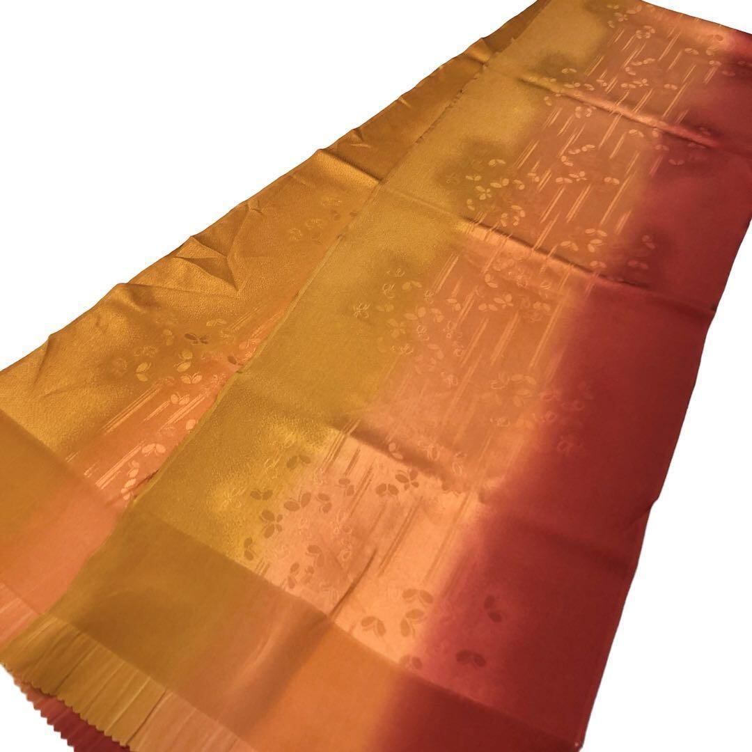 暖かい色味のグラデーションに蝶の柄裄がデザインされた素敵なお品でございます。