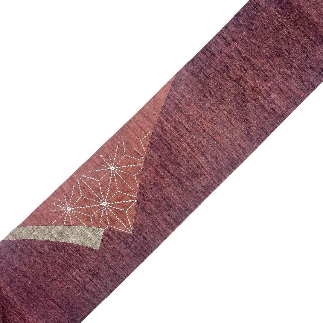 名古屋帯 刺し子 切嵌 麻の葉模様 紬 赤紫色 O-4634 着物 きもの kimono 和服 和装 中古 リサイクル着物 【送料無料】