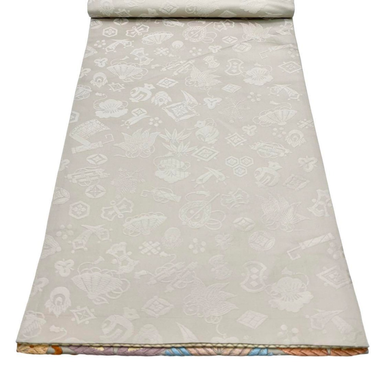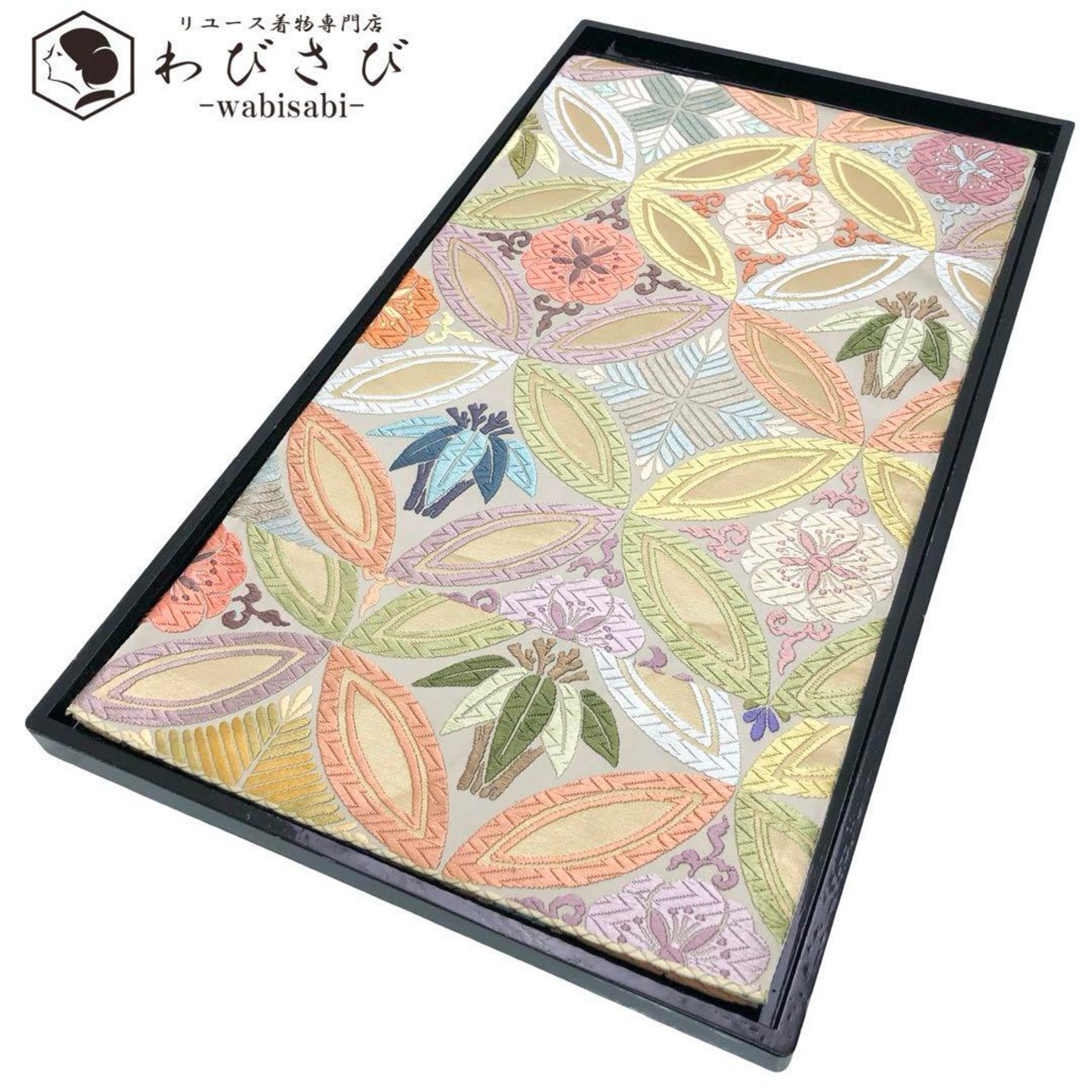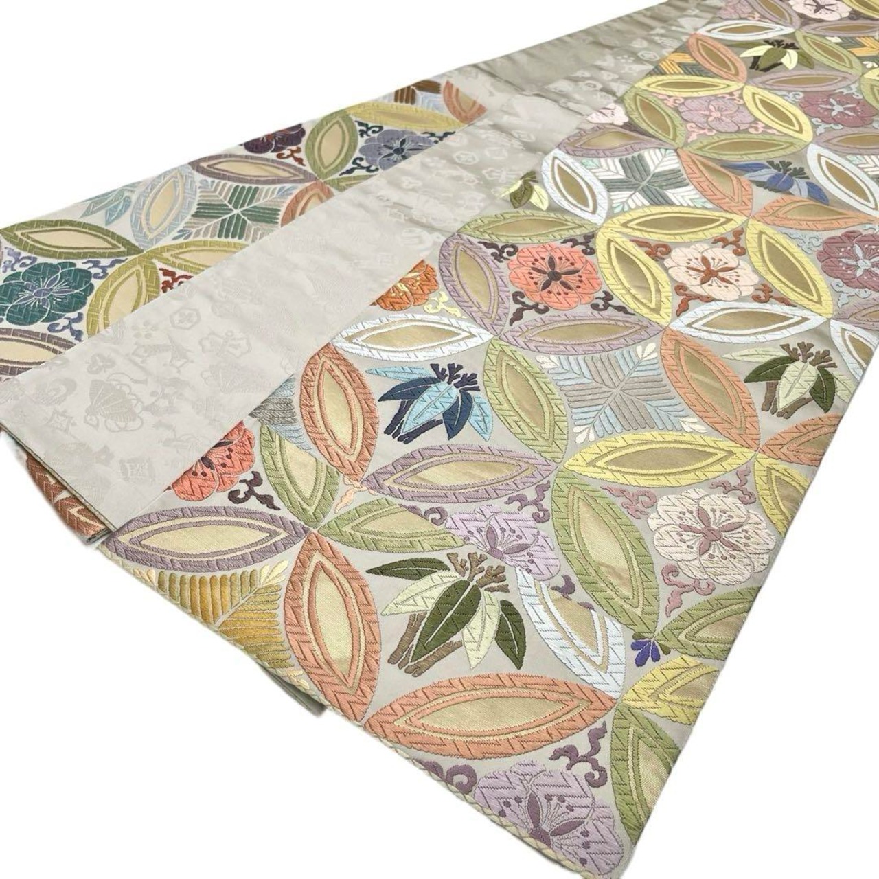 袋帯 草木唐織 吉祥七宝三友文 本金糸 生成色 O-4610 着物 きもの kimono 和服 和装 中古 リサイクル着物 【送料無料】