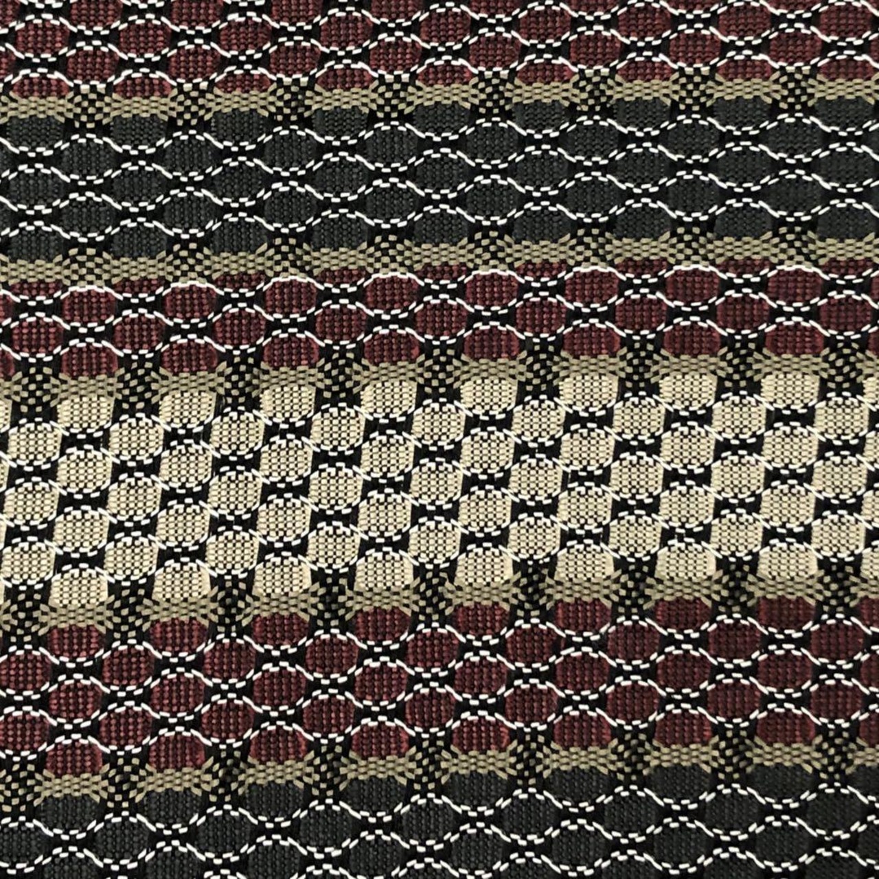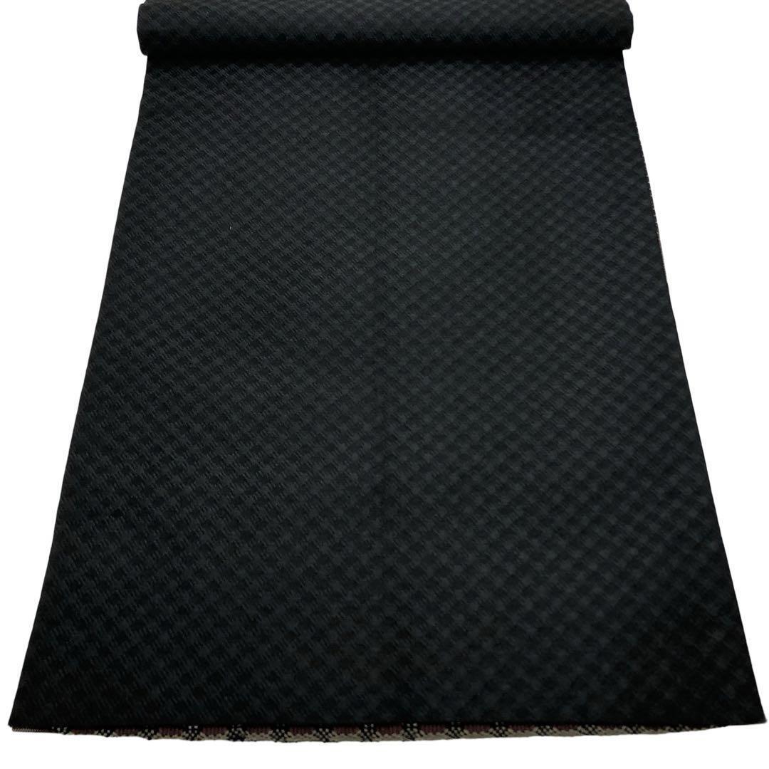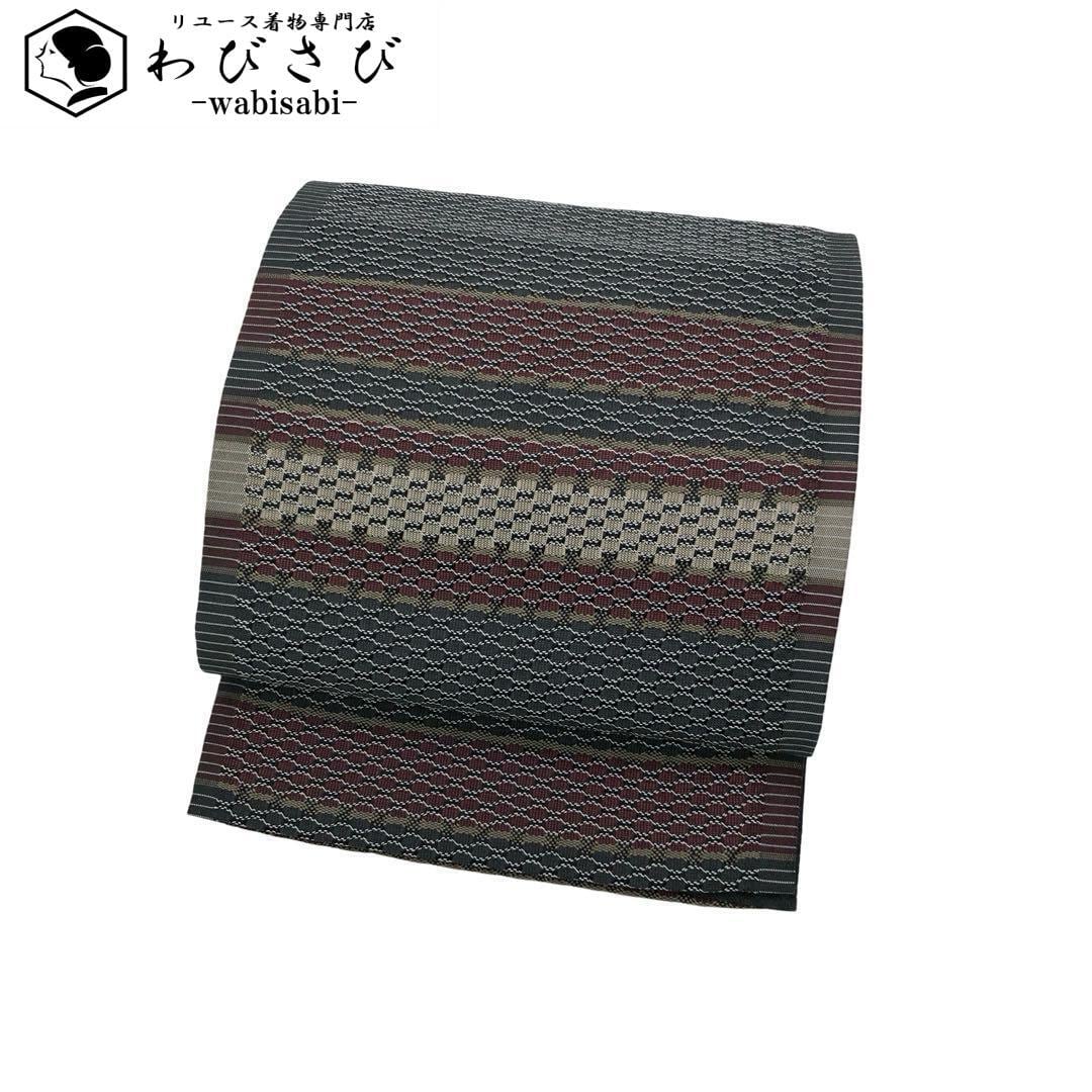 具墨色ベースの落ち着きのある色彩、横縞柄に横段織模様がデザインされた素敵な柄裄のお品でございます。