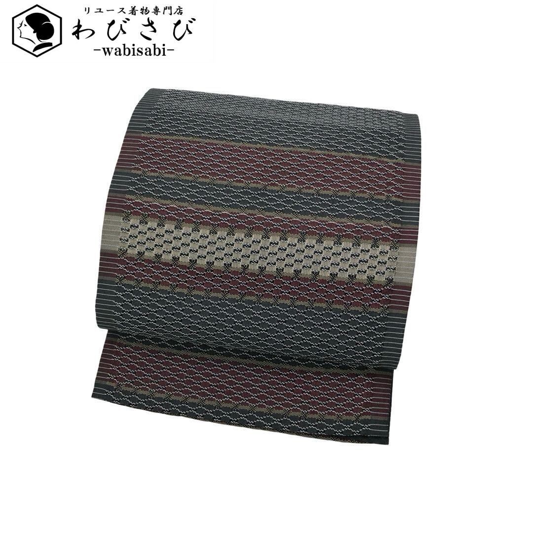京袋帯 横縞柄 横段織模様 具墨色 O-4616 着物 きもの kimono 和服 和装 中古 リサイクル着物 【送料無料】