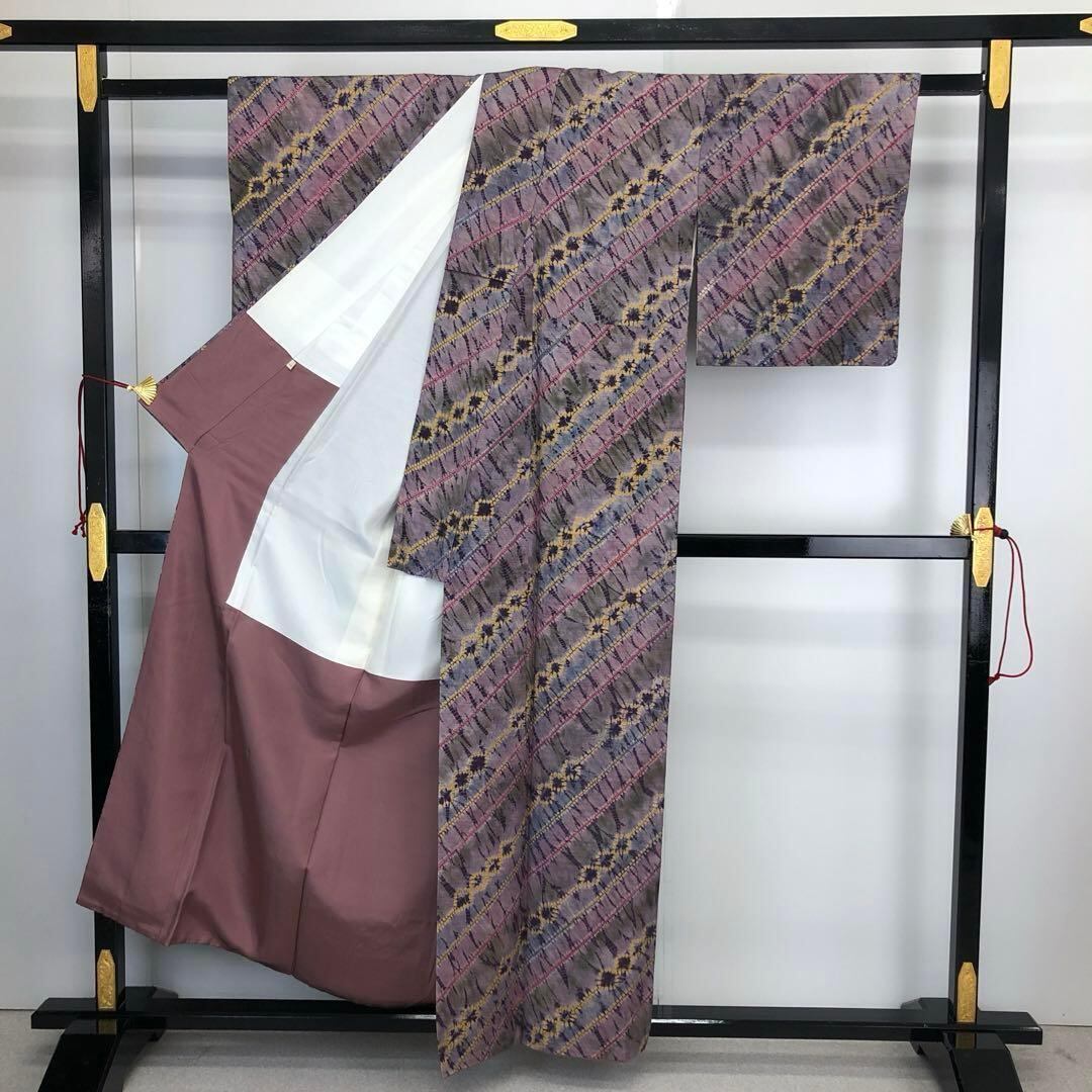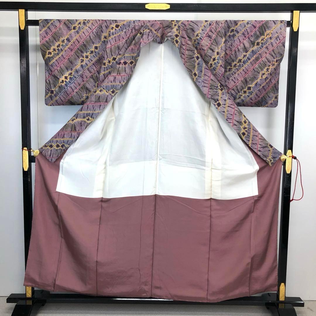 小紋 絞り柄 雰囲気の良い染め柄 薄京紫色 K-4351 着物 きもの kimono 和服 和装 中古 リサイクル着物 【送料無料】