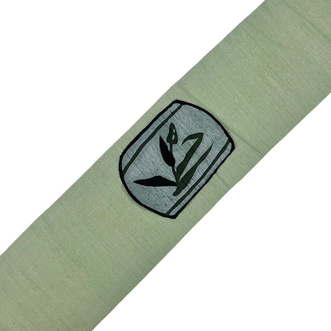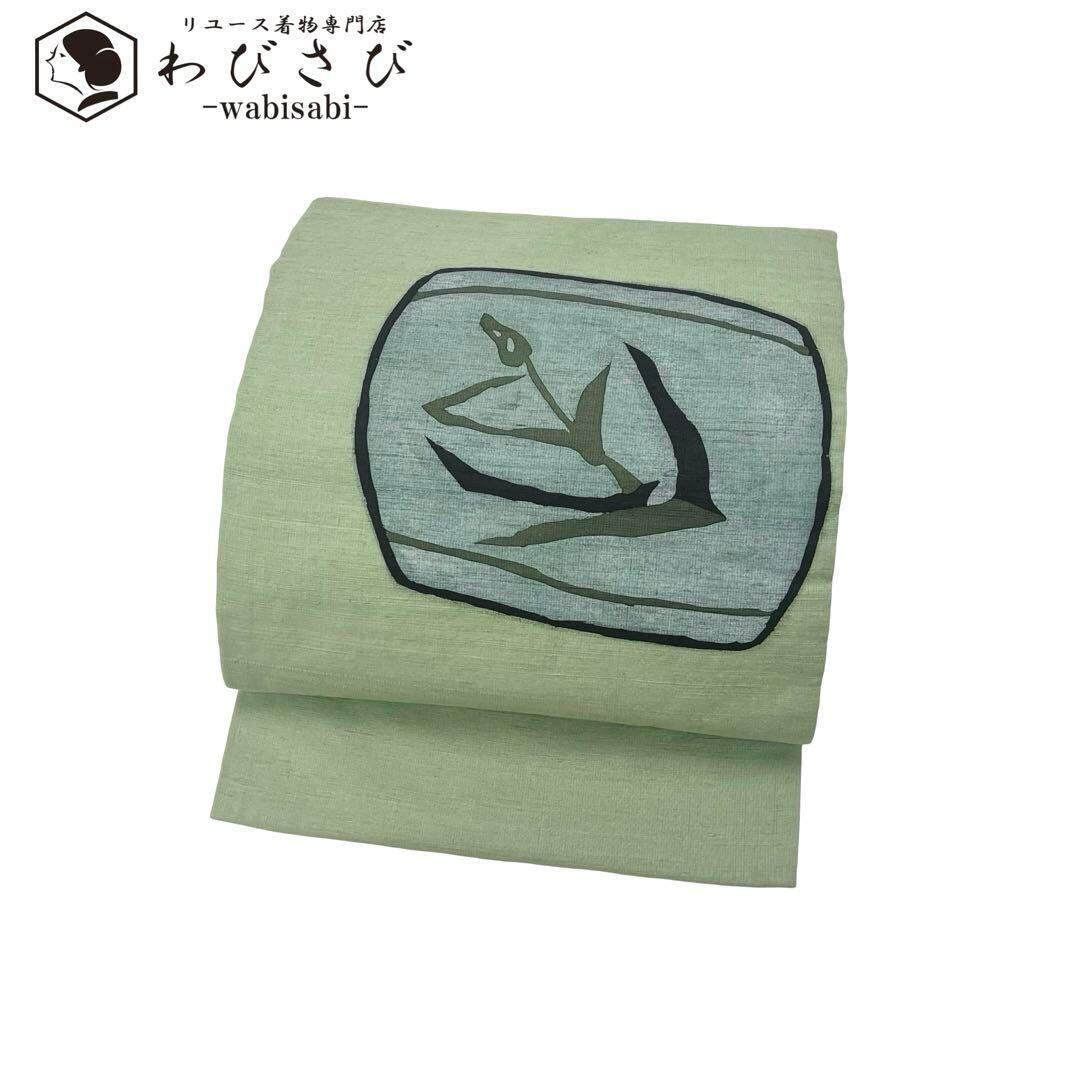若葉色のお色味の柔らかく手触りの良い紬地に抽象花模様がデザインされた素敵な柄裄のお品でございます。