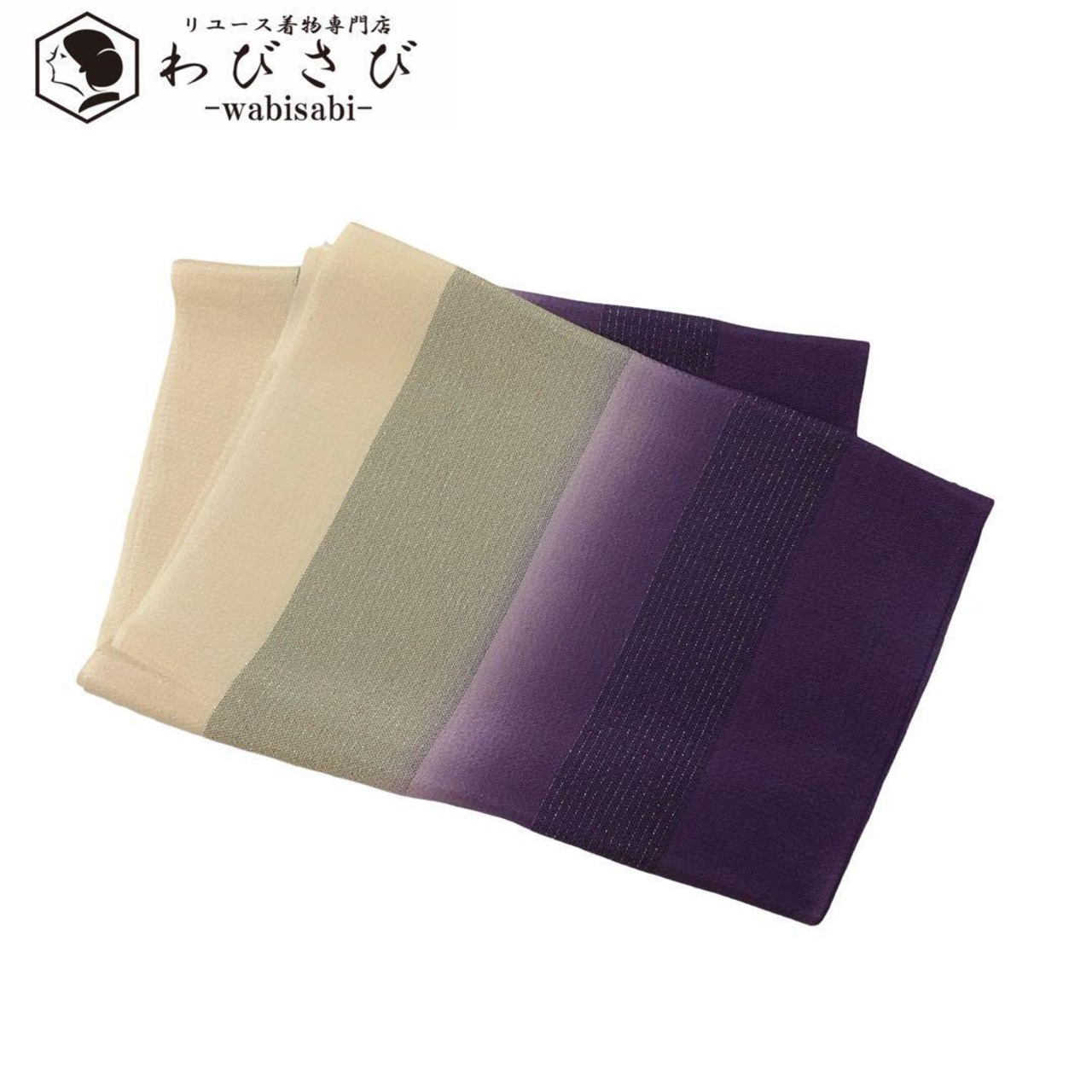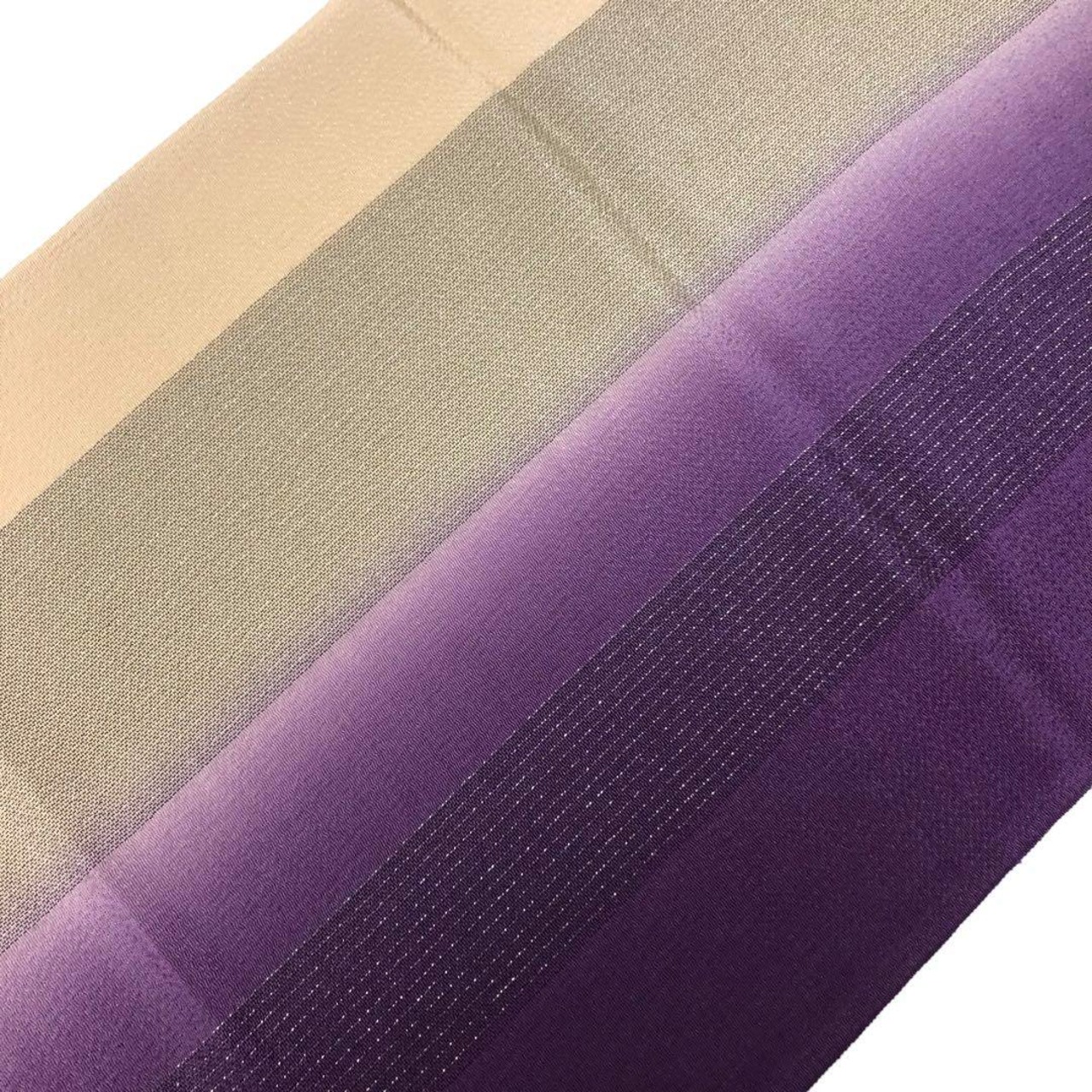 和装小物 帯揚げ 正絹 綸子 暈し 縦縞模様 銀糸 紫色 C-5476 着物 きもの kimono 和服 和装 中古 リサイクル着物 【送料無料】