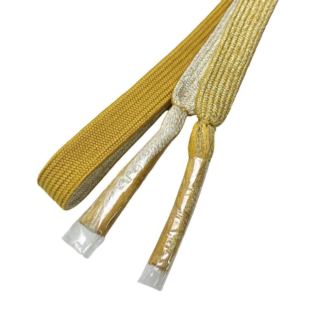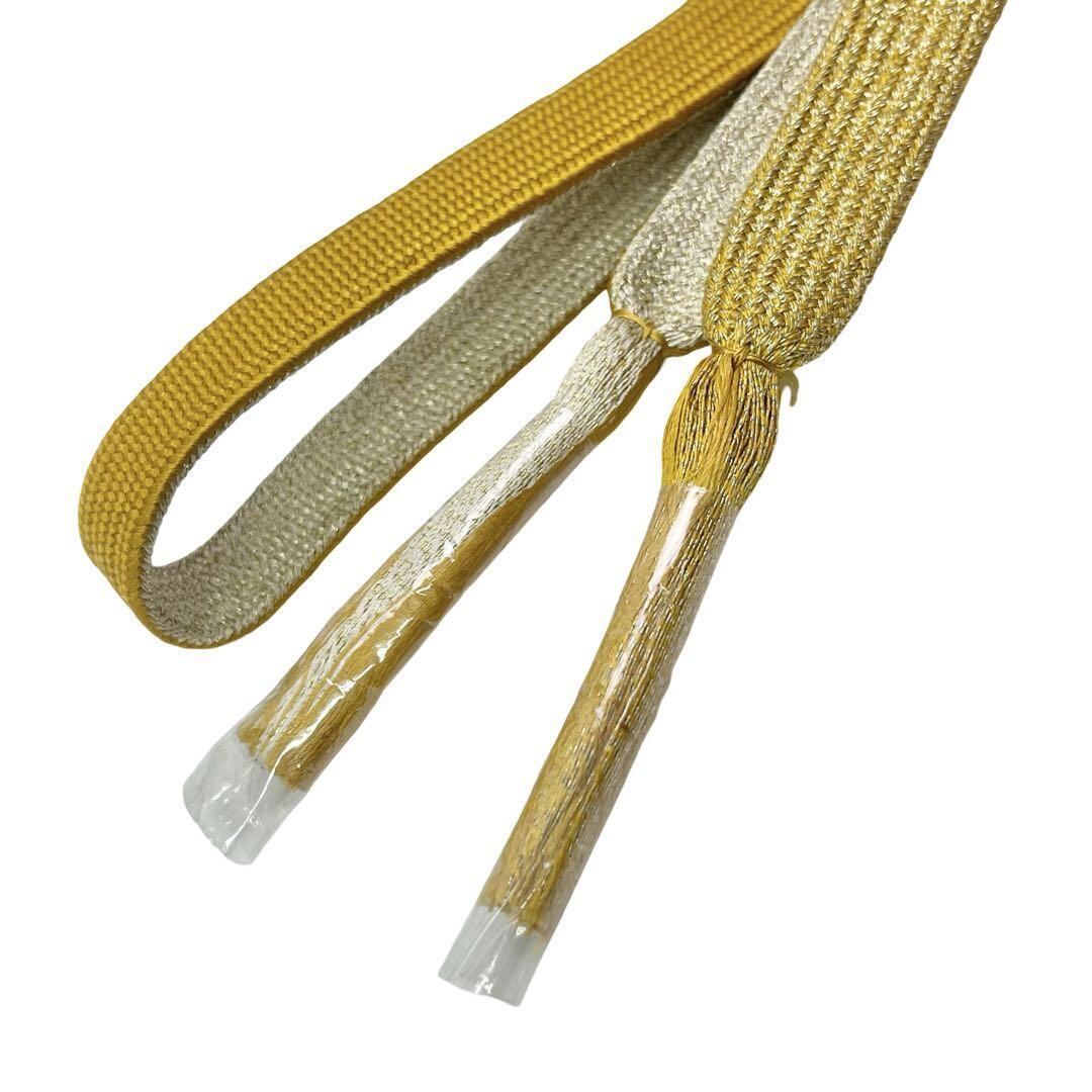 和装小物 帯締め 正絹 平組紐 高麗組 組紐 濃卵色 金糸 C-5480 着物 きもの kimono 和服 和装 中古 リサイクル着物 【送料無料】