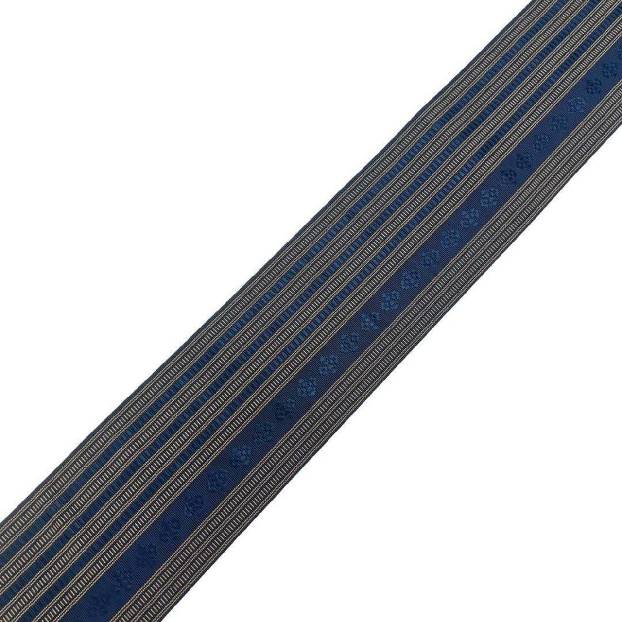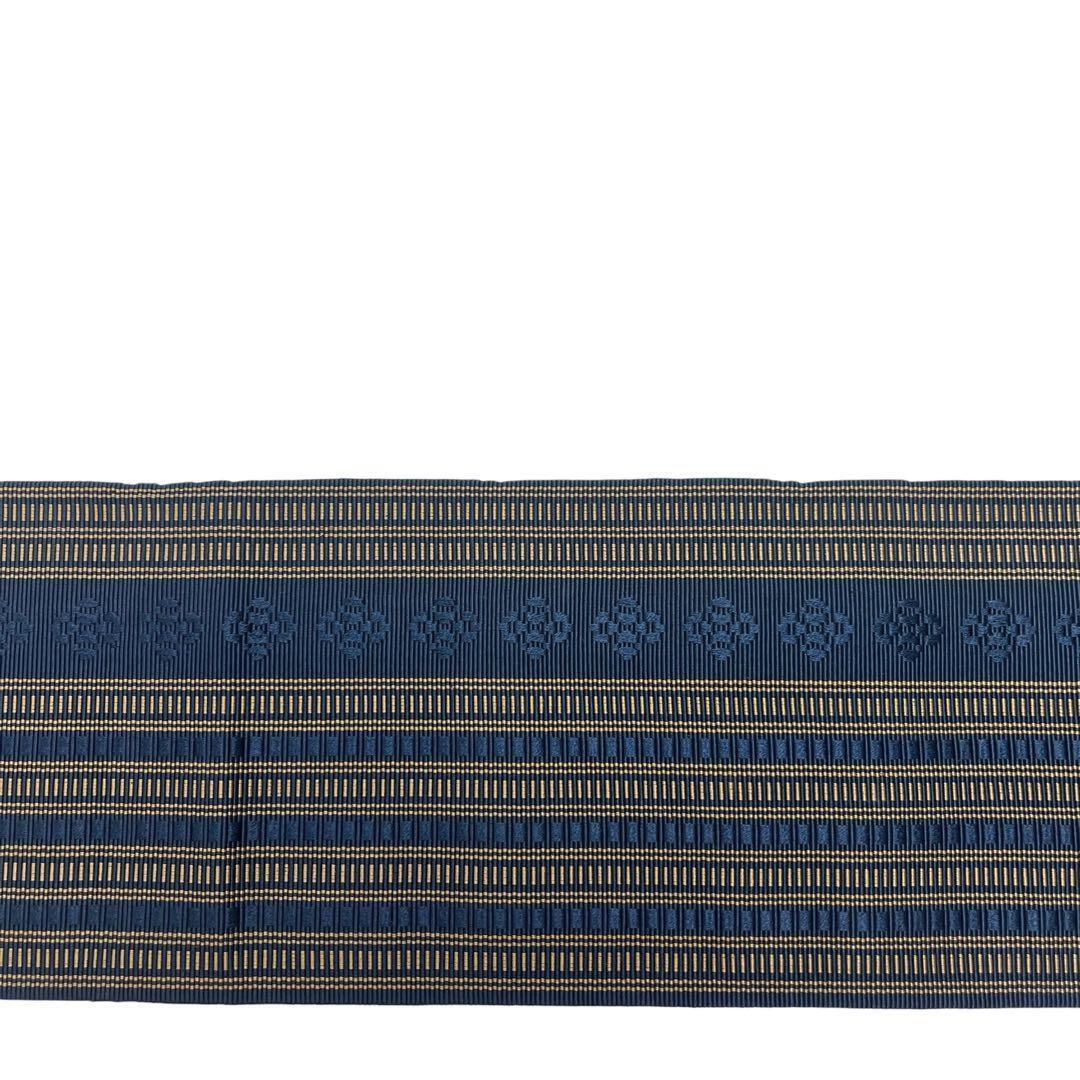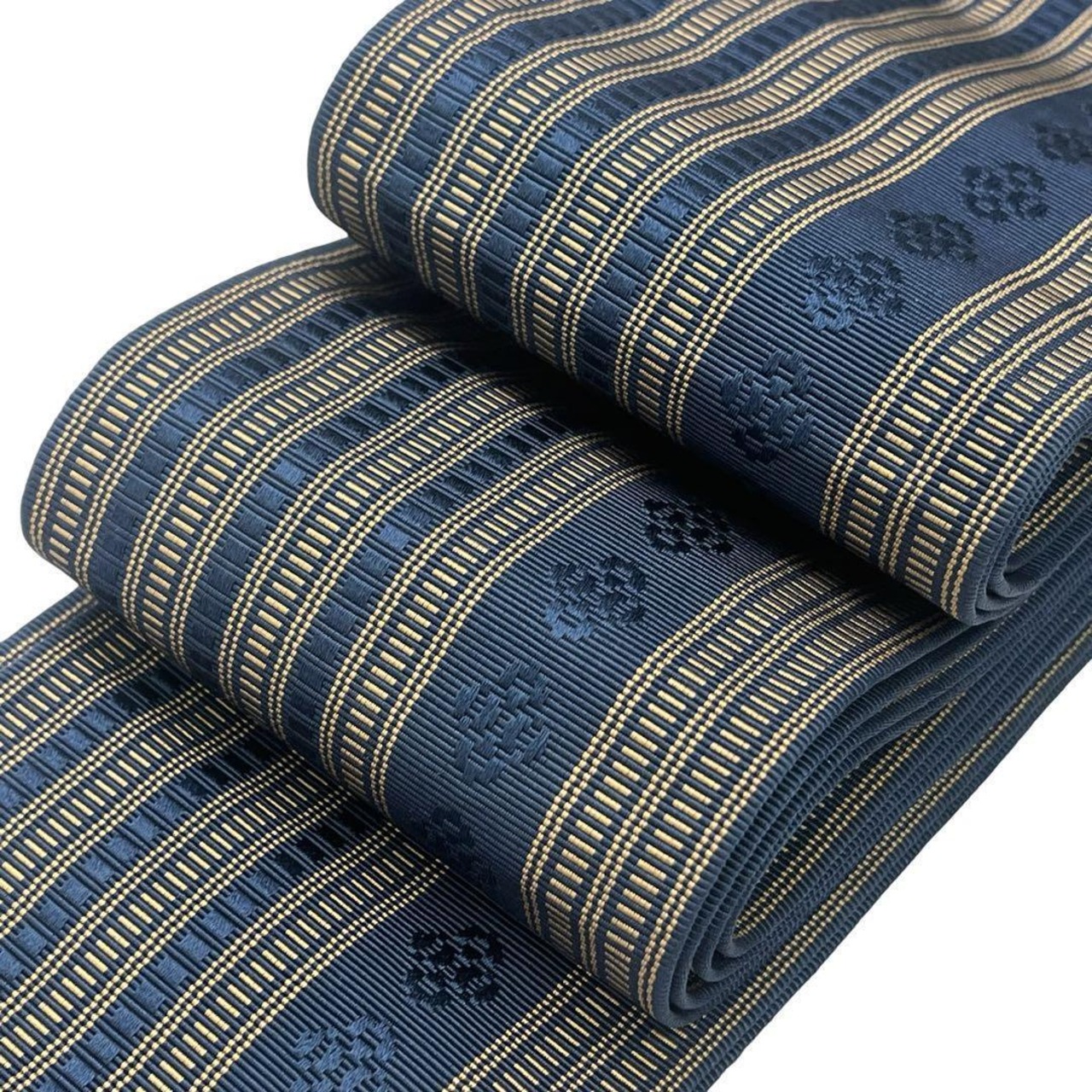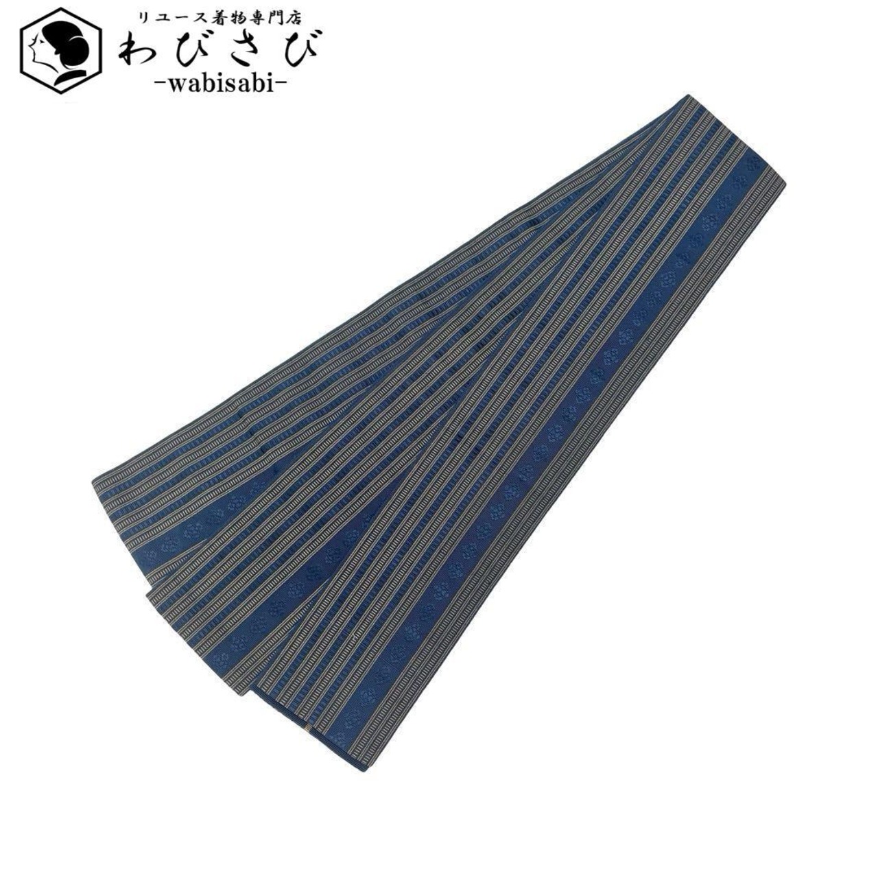 男帯 角帯 本場筑前博多織 縦縞織模様 深藍色 N-1056 着物 きもの kimono 和服 和装 中古 リサイクル着物 【送料無料】