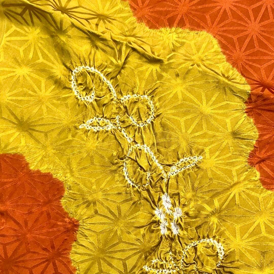 茶色のお色味ベースに絞りで花模様がデザインされた品のある素敵な柄裄のお品でございます。