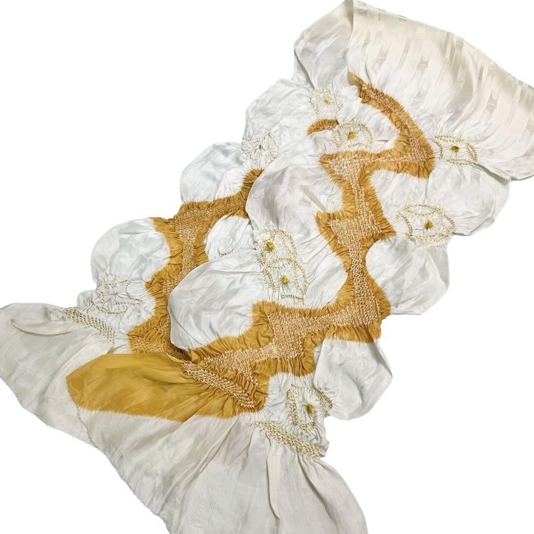 和装小物 帯揚げ 正絹 絞り 花模様 乳白色 C-5489 着物 きもの kimono 和服 和装 中古 リサイクル着物 【送料無料】