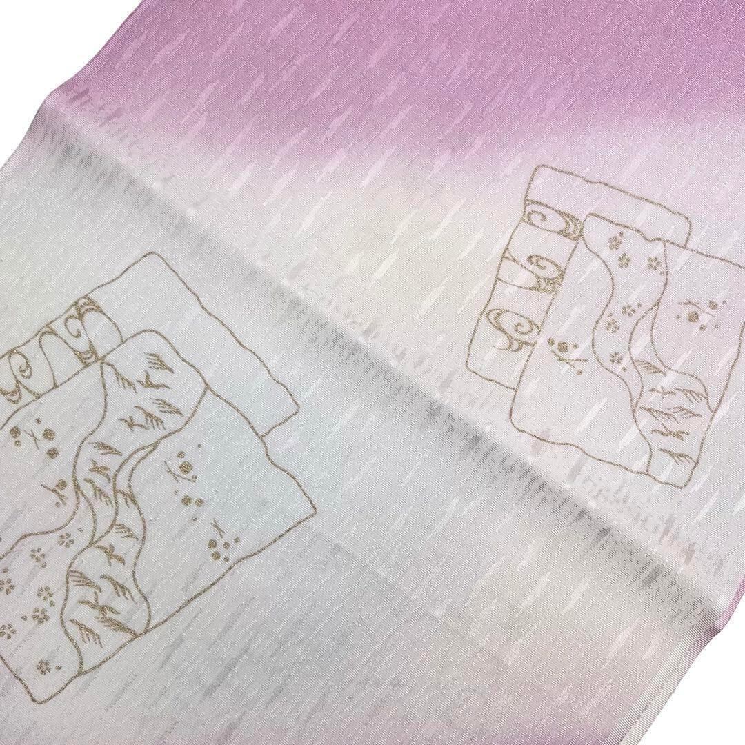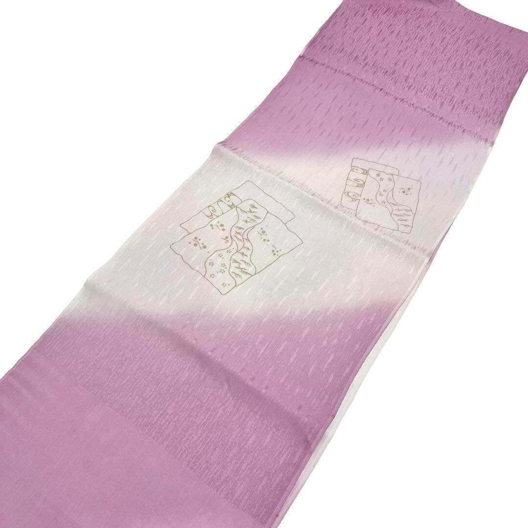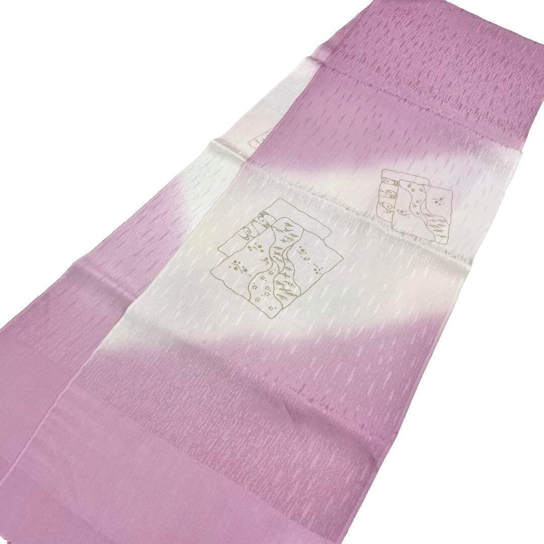 紫色のお色味の暈しに流水に鳥模様がデザインされた品のある素敵な柄裄のお品でございます。