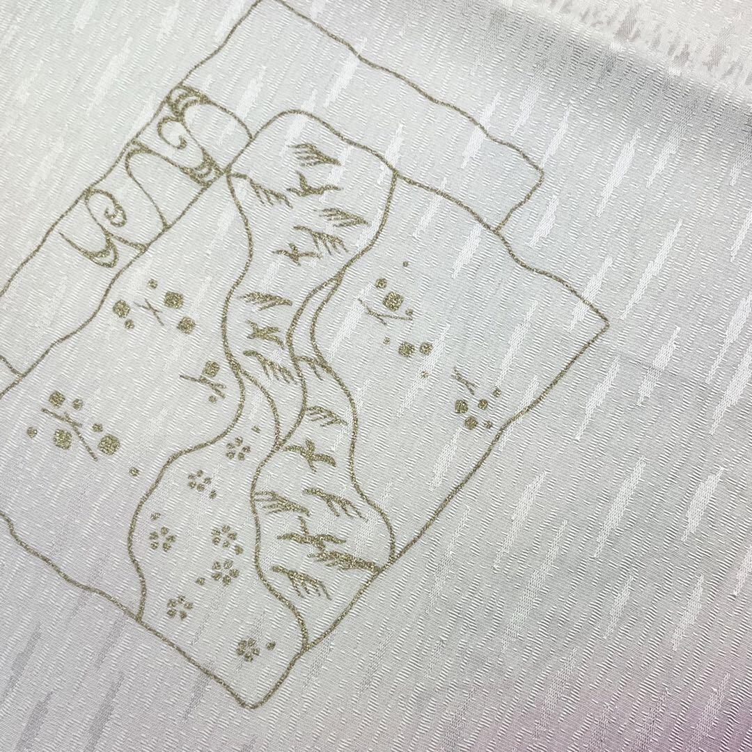 和装小物 帯揚げ 正絹 綸子 暈し 金彩 流水に鳥 紫色 C-5487 着物 きもの kimono 和服 和装 中古 リサイクル着物 【送料無料】