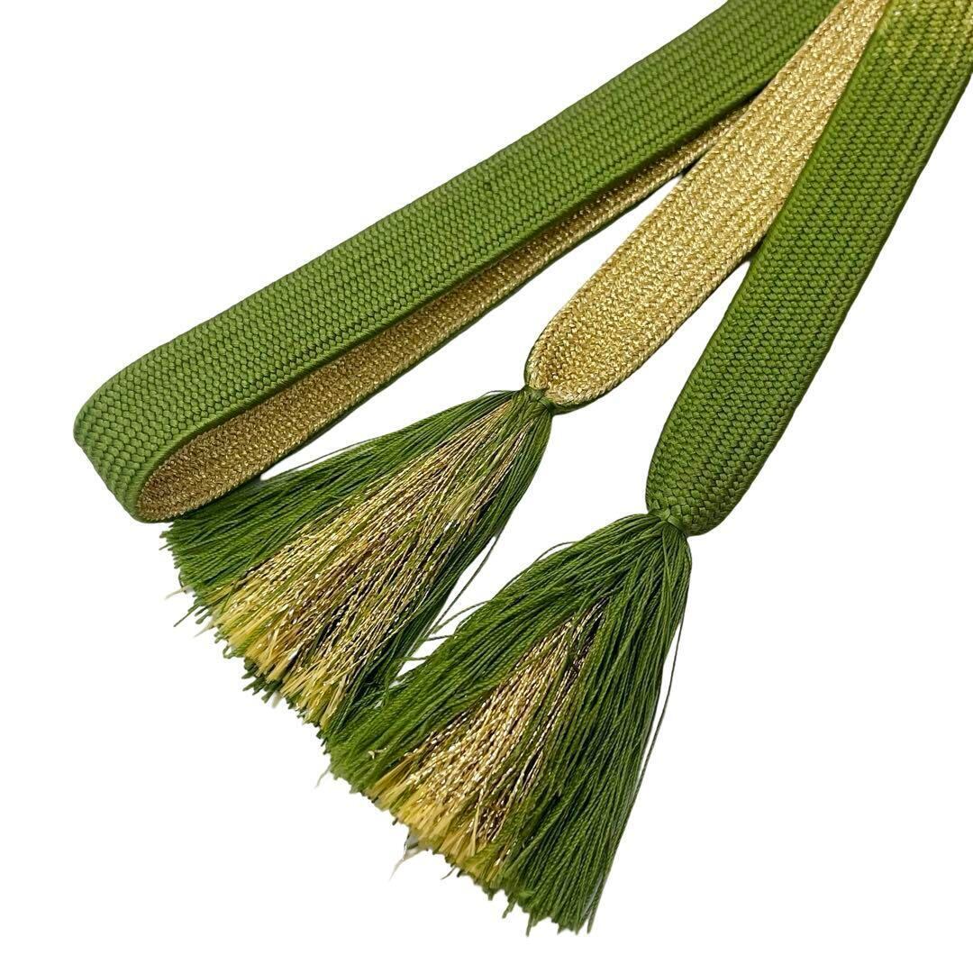 和装小物 帯締め 正絹 平組紐 高麗組 組紐 金糸 抹茶色 C-5485 着物 きもの kimono 和服 和装 中古 リサイクル着物 【送料無料】