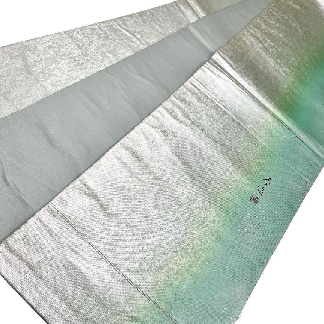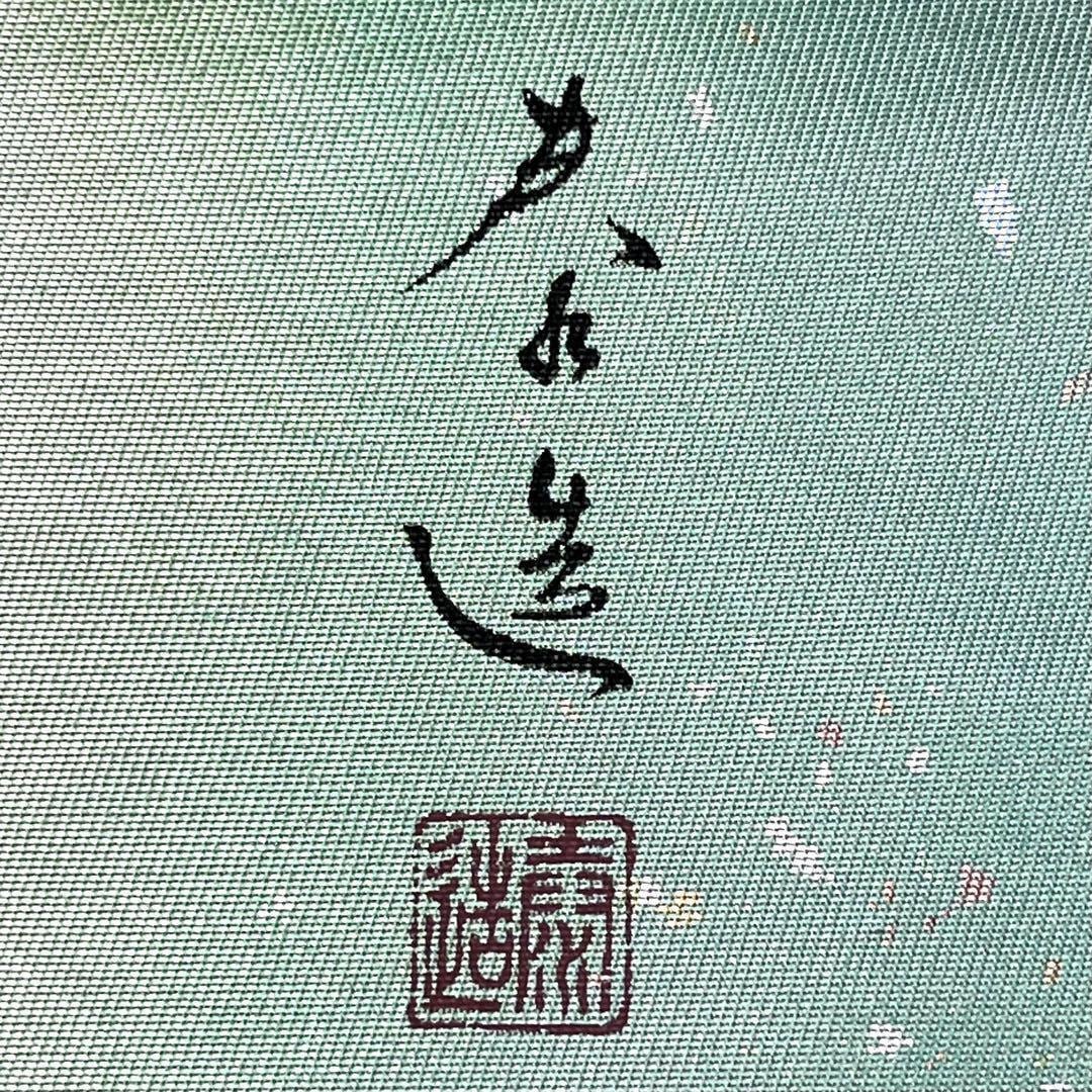 葉裏色ベースの美しいグラデーション、梅の花に螺鈿が使われた鶯の柄裄がなんとも美しい雰囲気の良い素敵な柄裄のお品でございます。