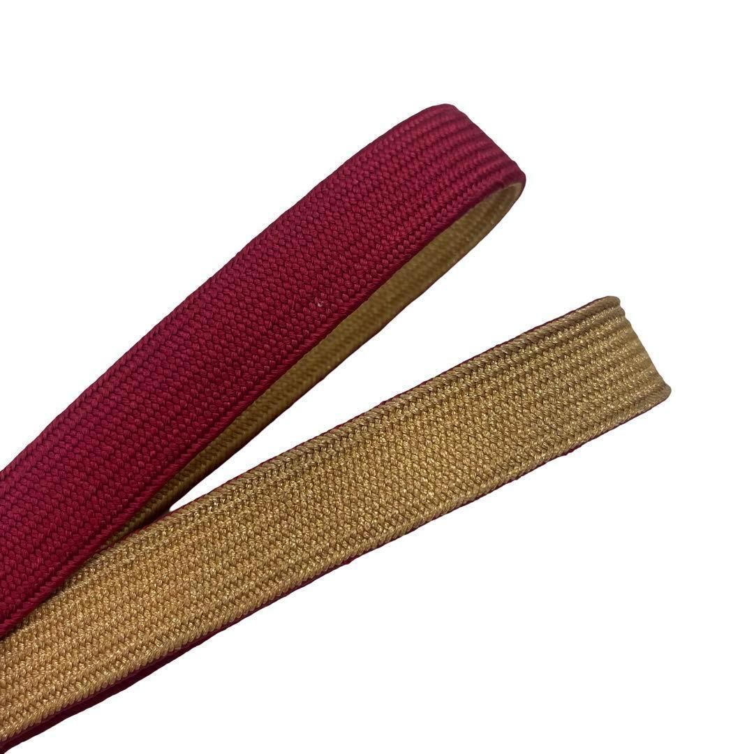 真紅色のお色味に織模様で紅葉がデザインされた素敵なお品でございます。