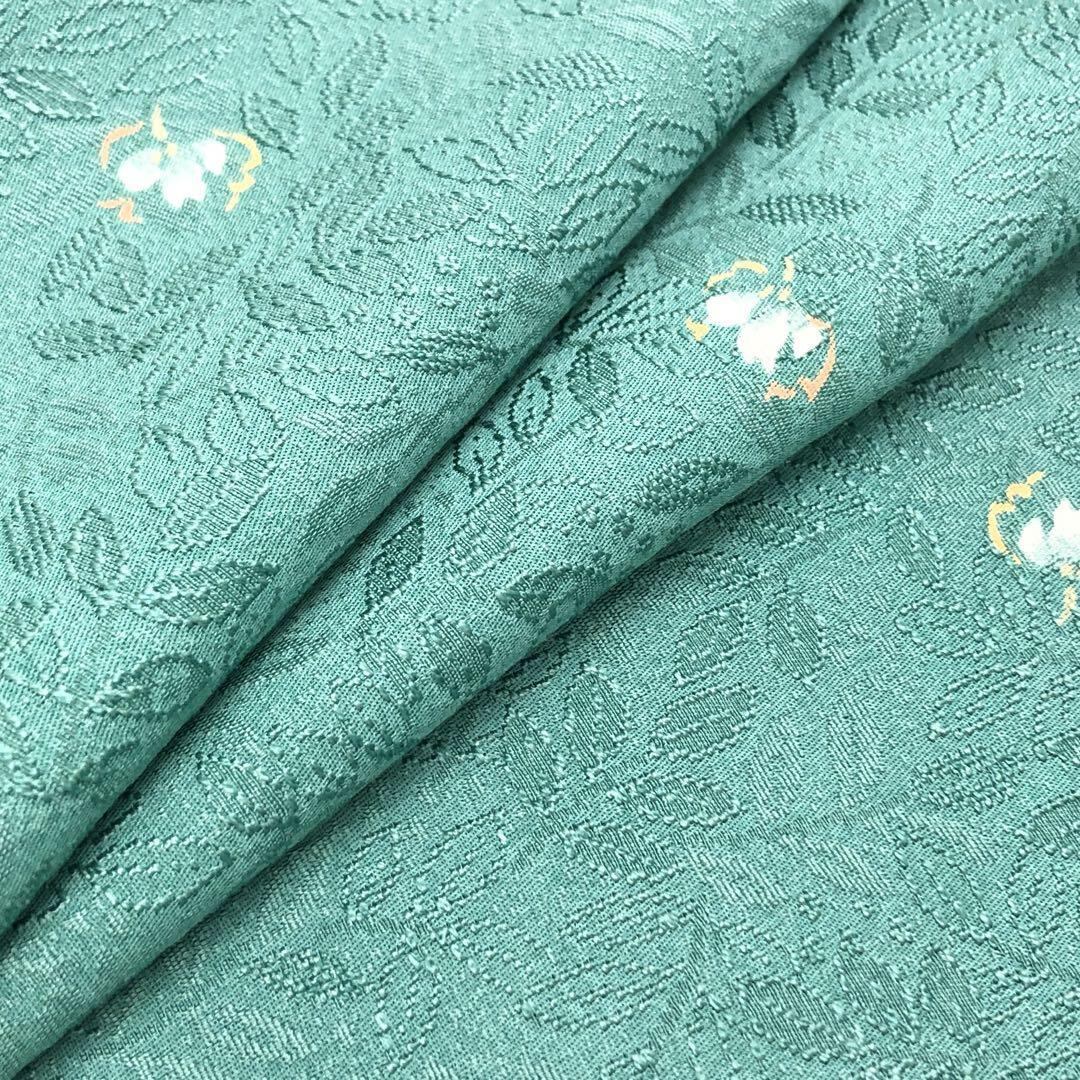 青竹色のお色味に花柄地模様、飛び柄の小花模様がデザインされた素敵な柄裄のお品でございます。