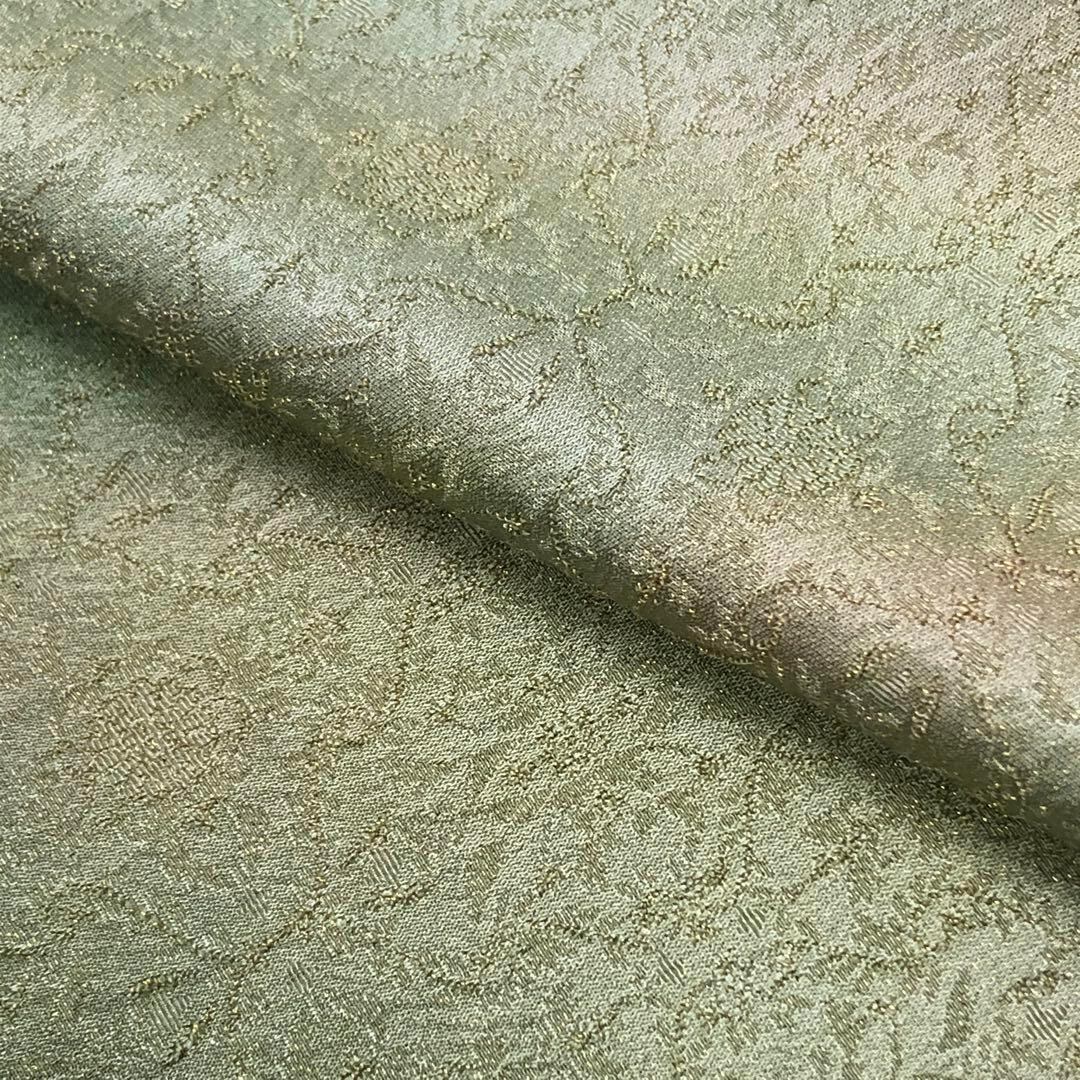 灰緑色ベースの暈しの綸子の帯揚げ、薄茶色のお色味の高麗組の素敵なお品でございます。