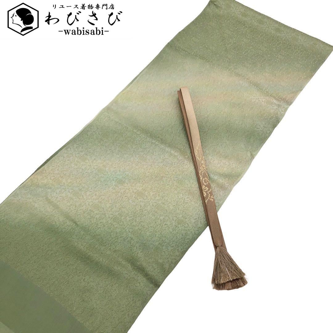 和装小物 帯締め 帯揚げ セット 正絹 綸子 平組紐 金糸 C-5496 着物 きもの kimono 和服 和装 中古 リサイクル着物 【送料無料】