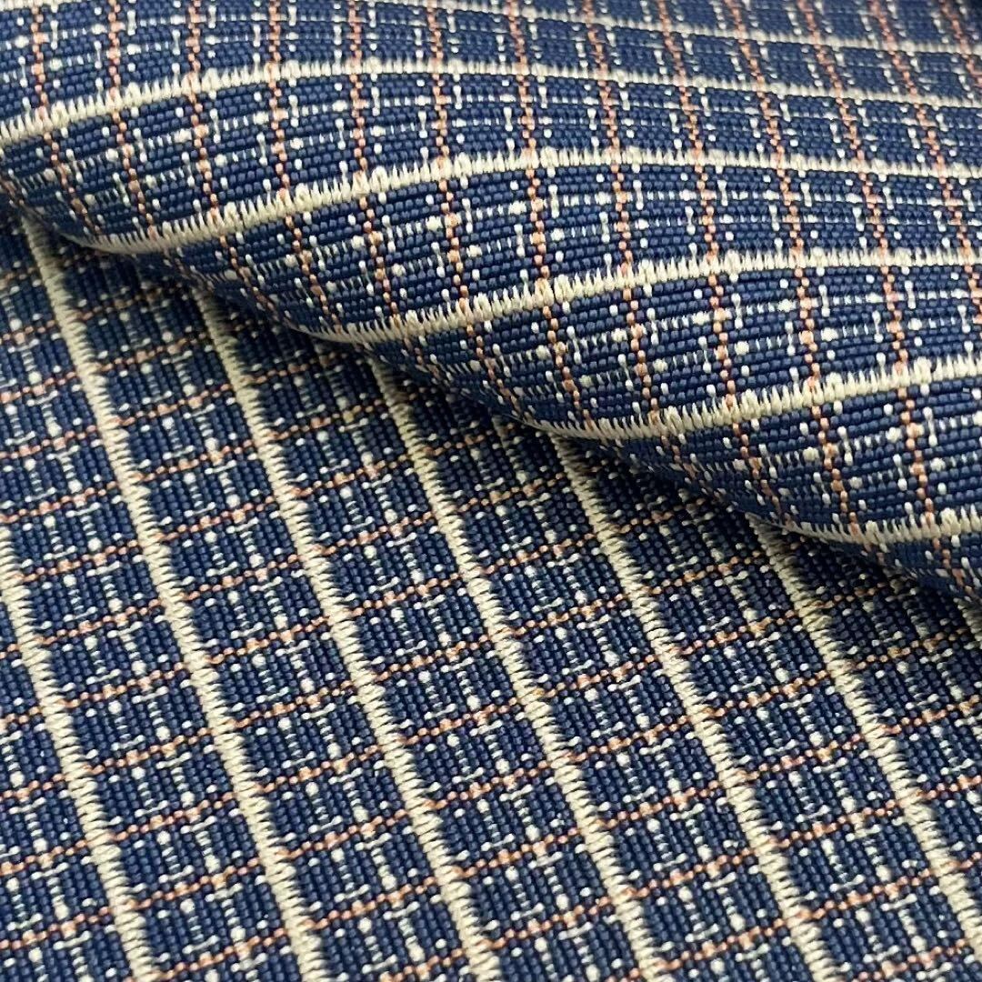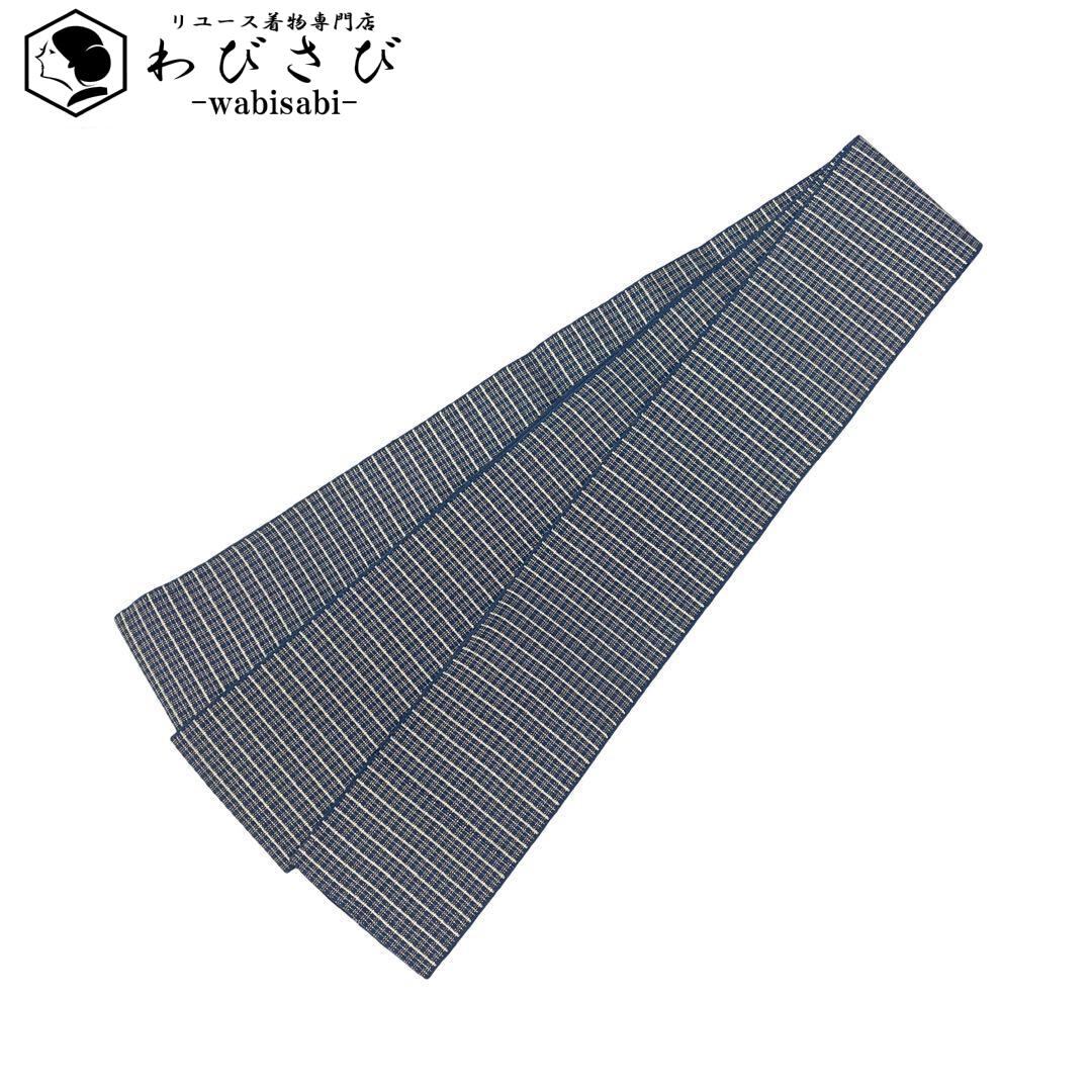 中縹色のお色味に格子柄の織模様がデザインされた素敵な柄裄のお品でございます。