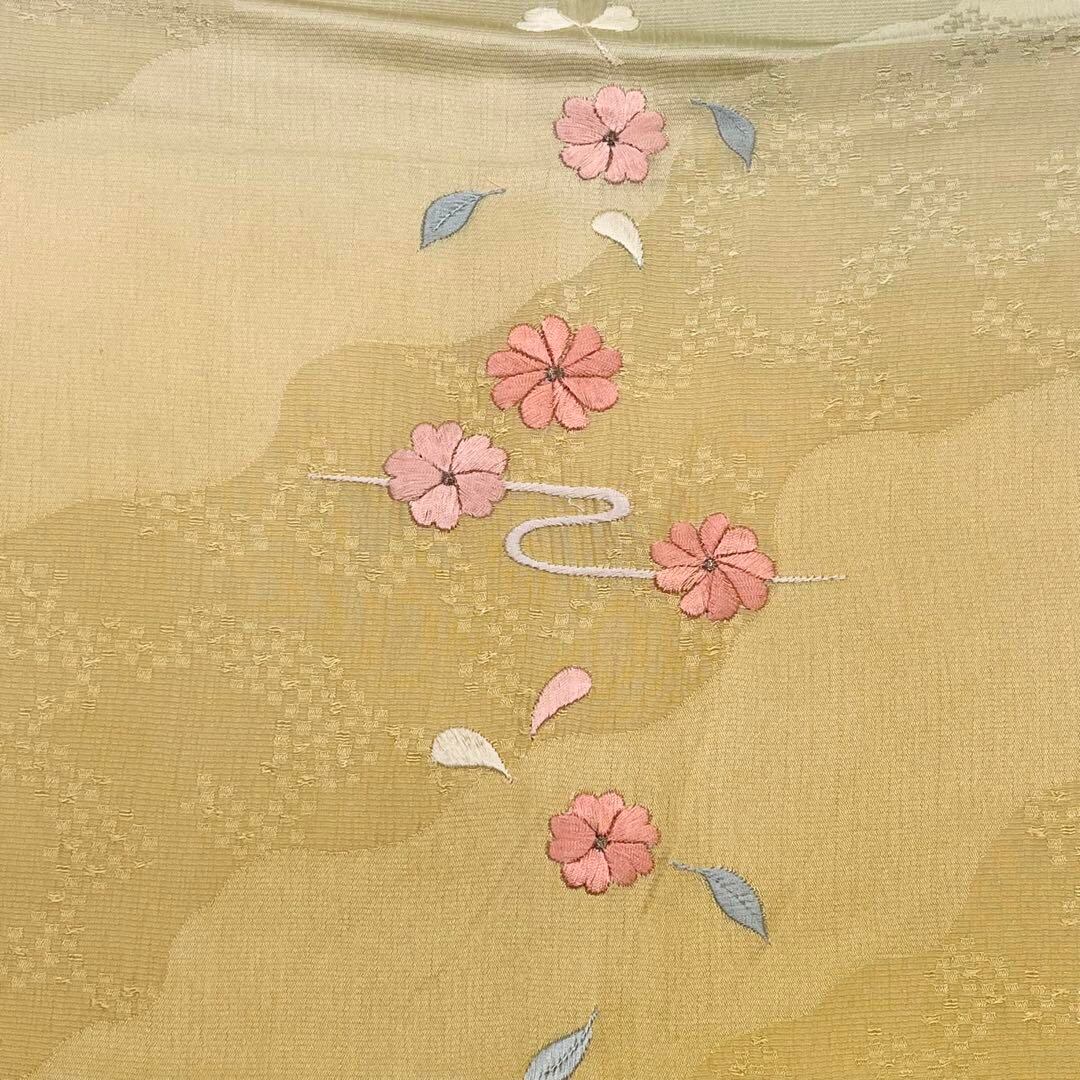 梔子色のお色味の暈しに刺繍で花模様がデザインされた品のある素敵な柄裄のお品でございます。