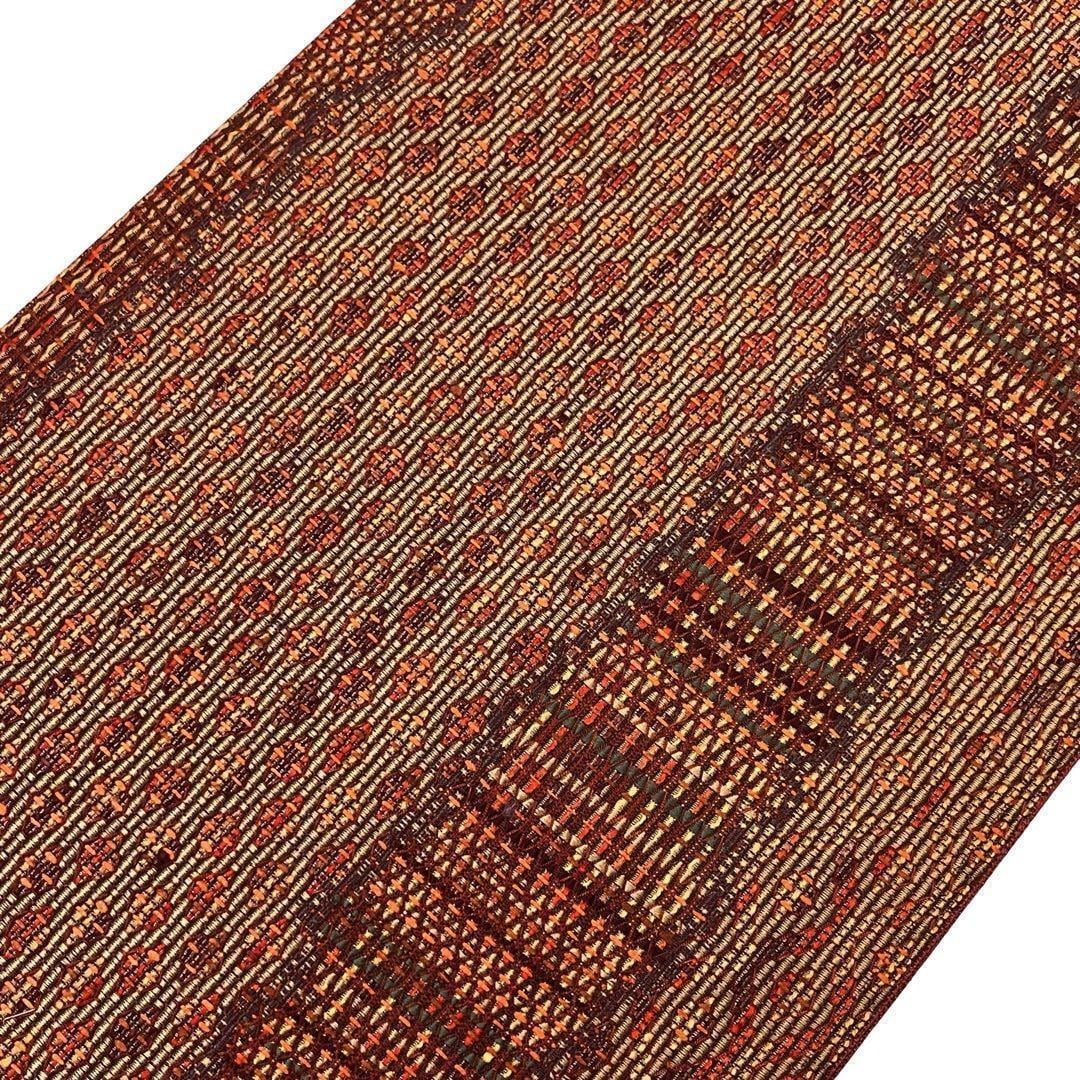 猩々茶色ベースの落ち着きのあるお色味の博多の美しい織模様がデザインされた素敵なお品でございます。
