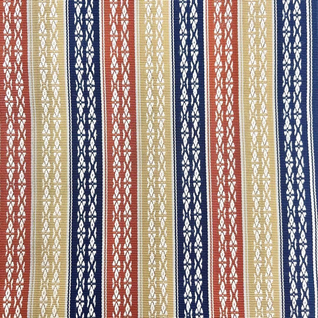 三色の縦縞模様に献上柄の織模様がデザインされた素敵な柄裄のお品でございます。