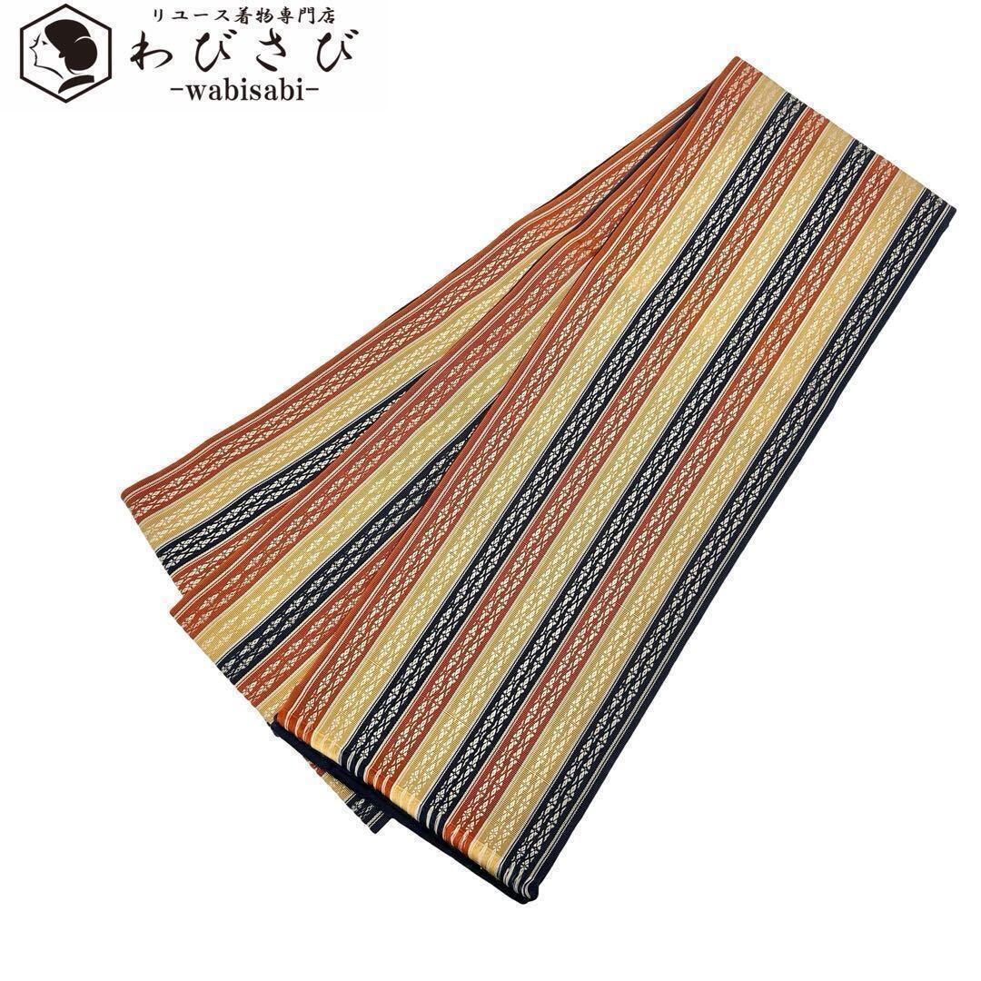 半幅帯 本場筑前博多織 三色の縦縞模様 D-2006 着物 きもの kimono 和服 和装 中古 リサイクル着物 【送料無料】