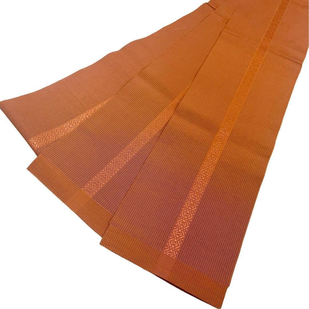 半幅帯 単衣 本場筑前博多織 縞模様 献上柄 証紙付 赤錆色 D-2008 着物 きもの kimono 和服 和装 中古 リサイクル着物 【送料無料】