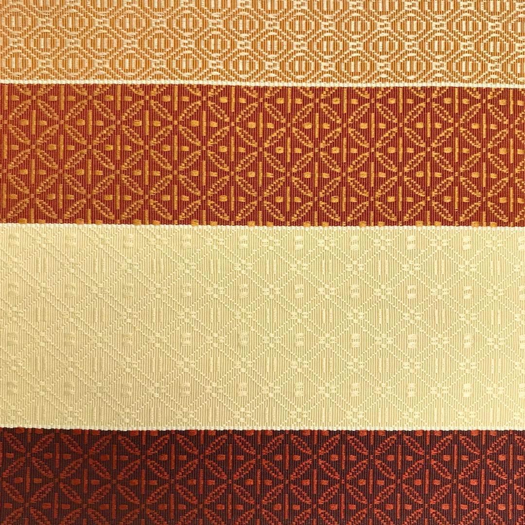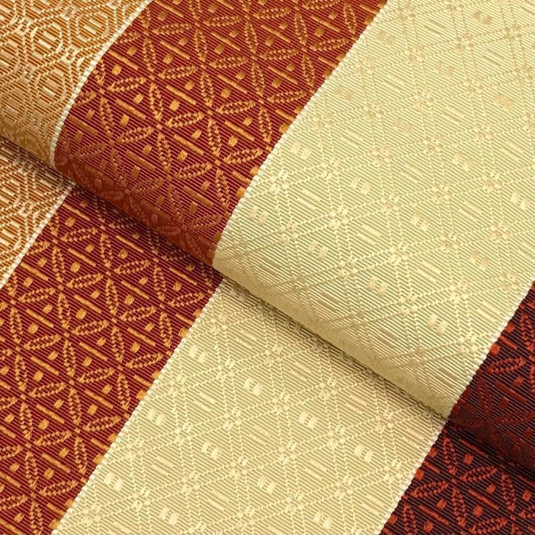 縦縞に美しい多様な織模様がデザインされた素敵なお品でございます。