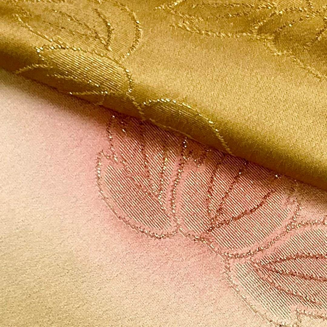 薄茶色のお色味の暈しに花模様がデザインされた品のある素敵な柄裄のお品でございます。