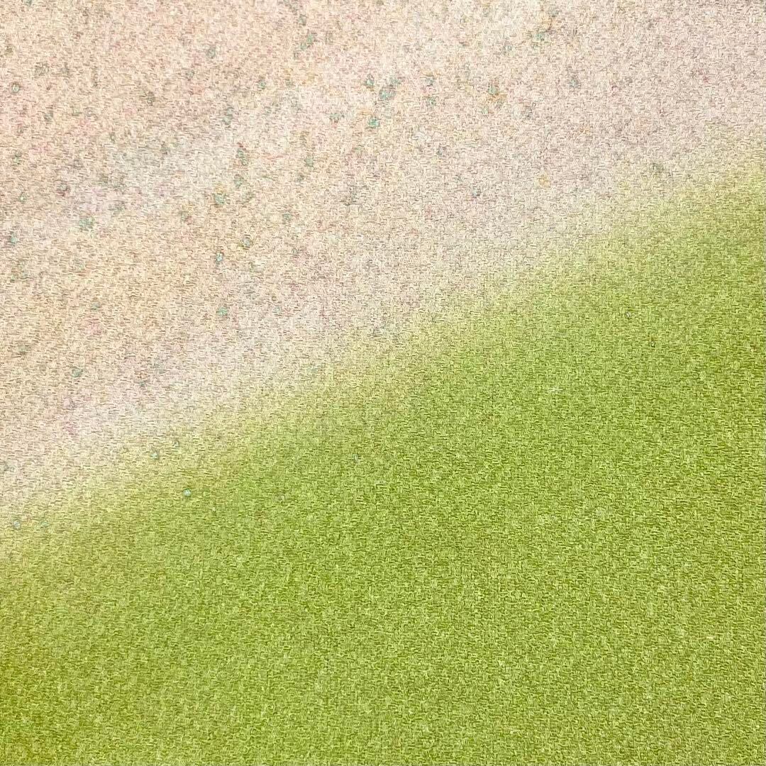 抹茶色のお色味に斜め暈し模様がデザインされた品のある素敵な柄裄のお品でございます。