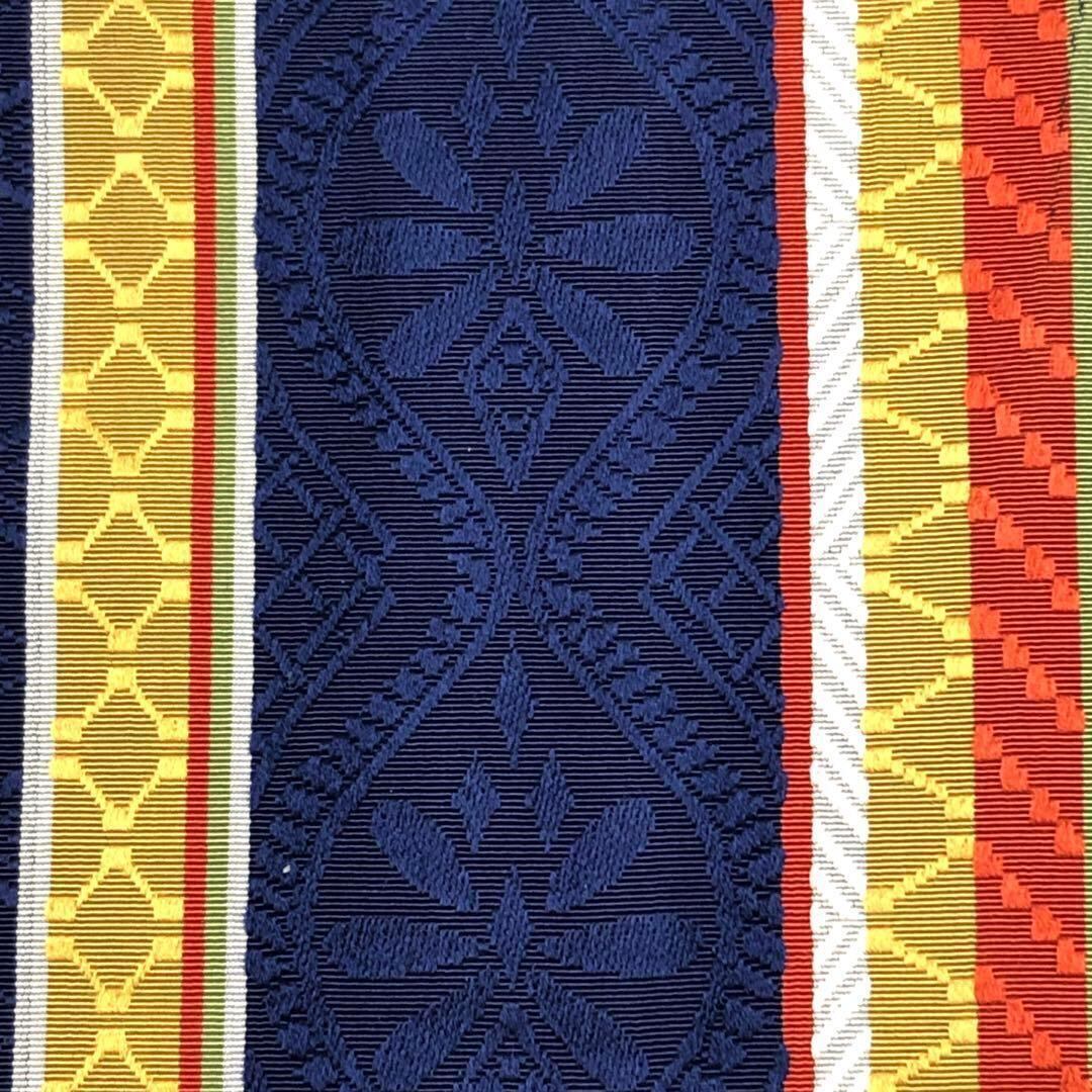 紺鉄色ベースのお色味に立桶に花模様の柄裄がデザインされた素敵なお品でございます。