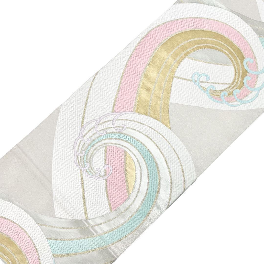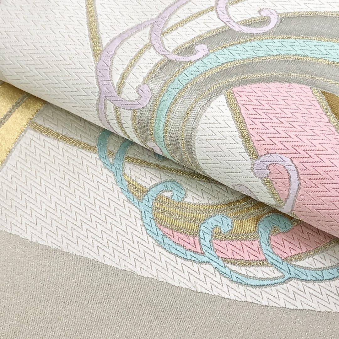 袋帯 綴れ 波模様 金糸 乳白色 O-4648 着物 きもの kimono 和服 和装 中古 リサイクル着物 【送料無料】