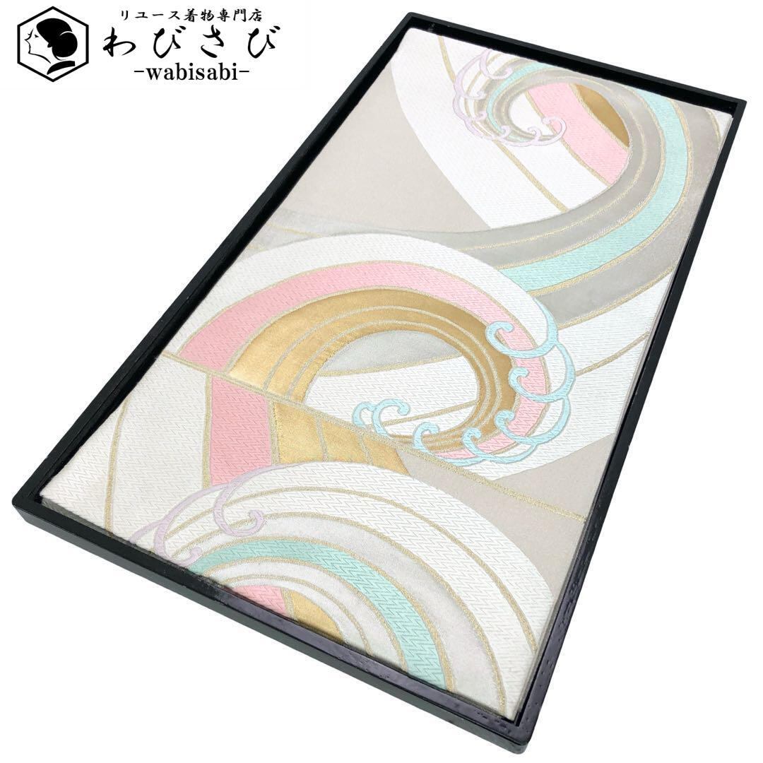 乳白色の品のあるお色味に波模様の柄裄がデザインされた素敵なお品でございます。
