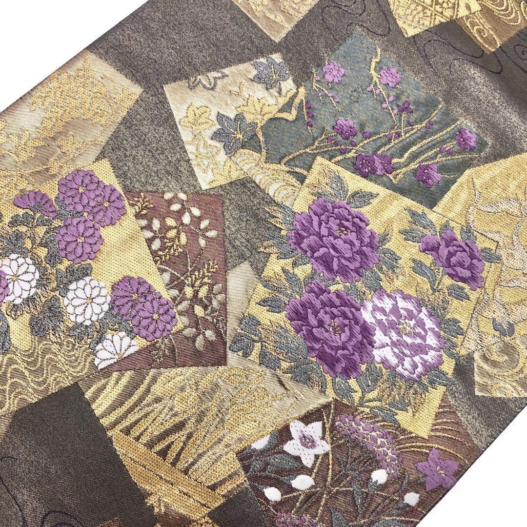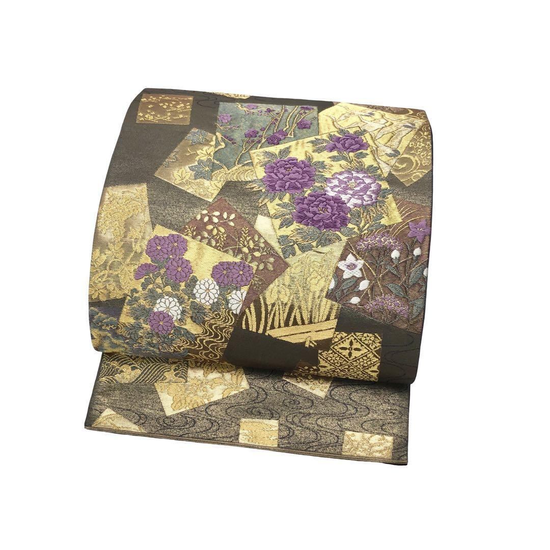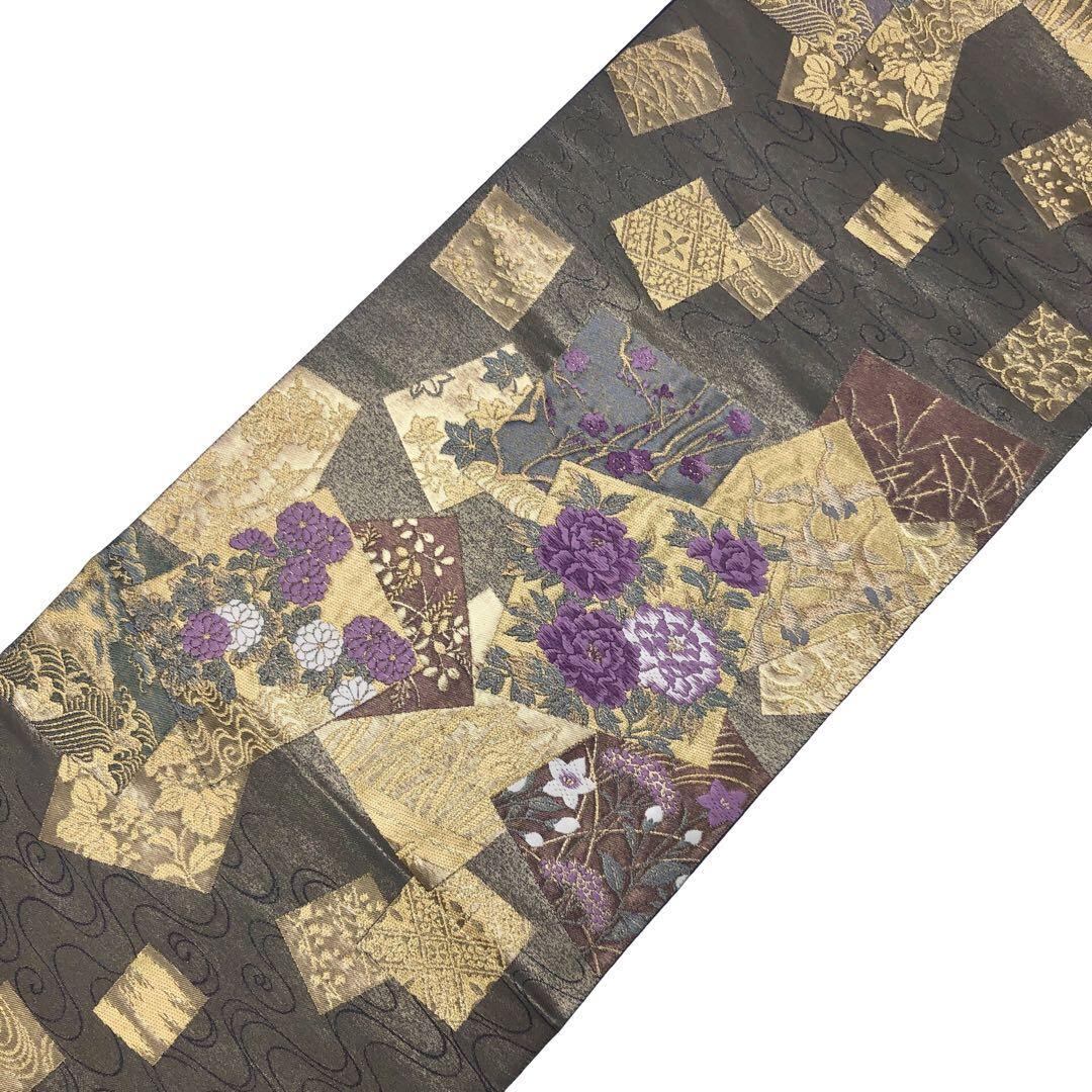 袋帯 西陣 聚楽 帝王紫 色紙に美しい花模様 黝色 金色 金糸 O-4682 着物 きもの kimono 和服 和装 中古 リサイクル着物 【送料無料】