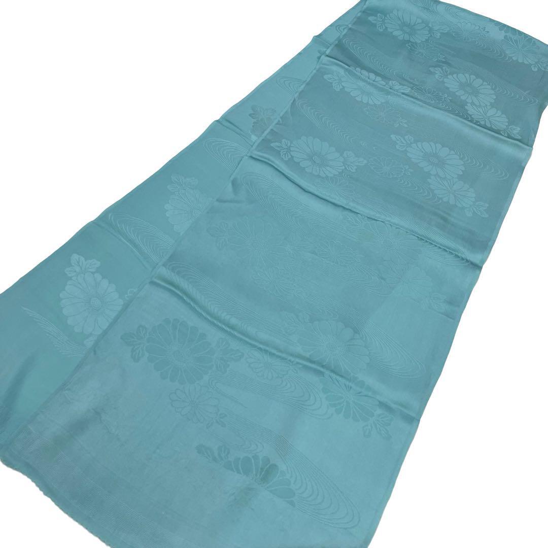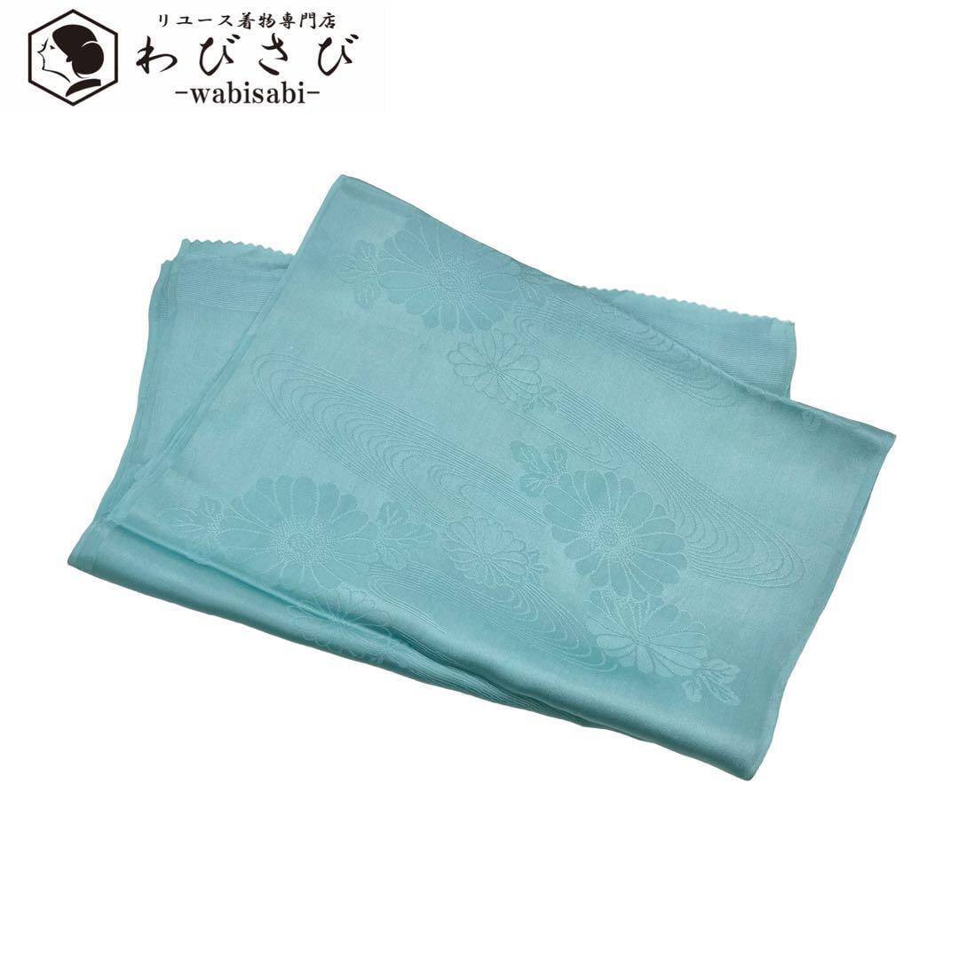 和装小物 帯揚げ 正絹 綸子 流水に菊の花模様 水色 C-5513 着物 きもの kimono 和服 和装 中古 リサイクル着物 【送料無料】