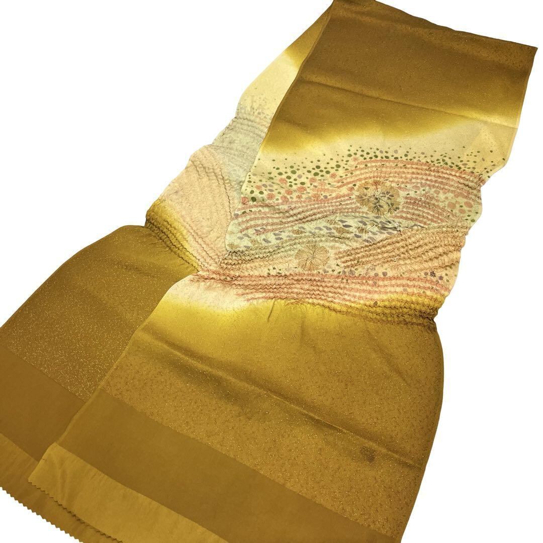 和装小物 帯揚げ 正絹 暈し 絞り 花模様 金糸 黄橡色 C-5519 着物 きもの kimono 和服 和装 中古 リサイクル着物 【送料無料】