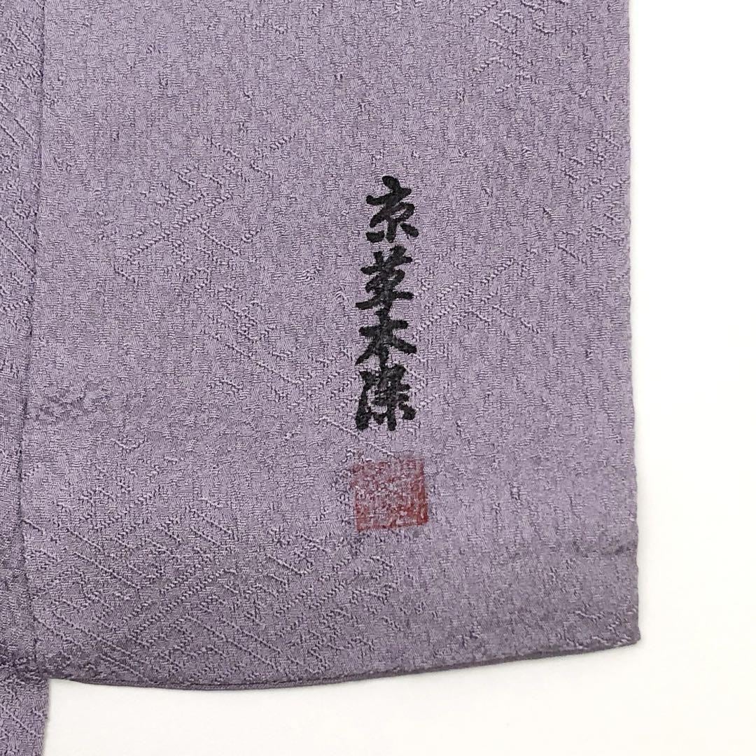 色無地 作家物 京草木染 紗綾形地模様 藤紫色 縮緬 K-4390 着物 きもの kimono 和服 和装 中古 リサイクル着物 【送料無料】