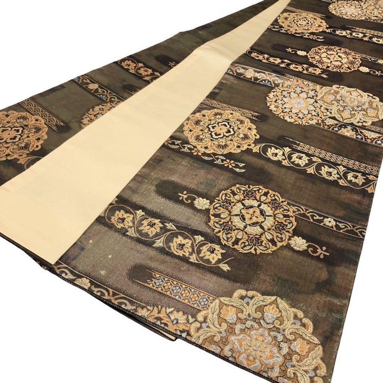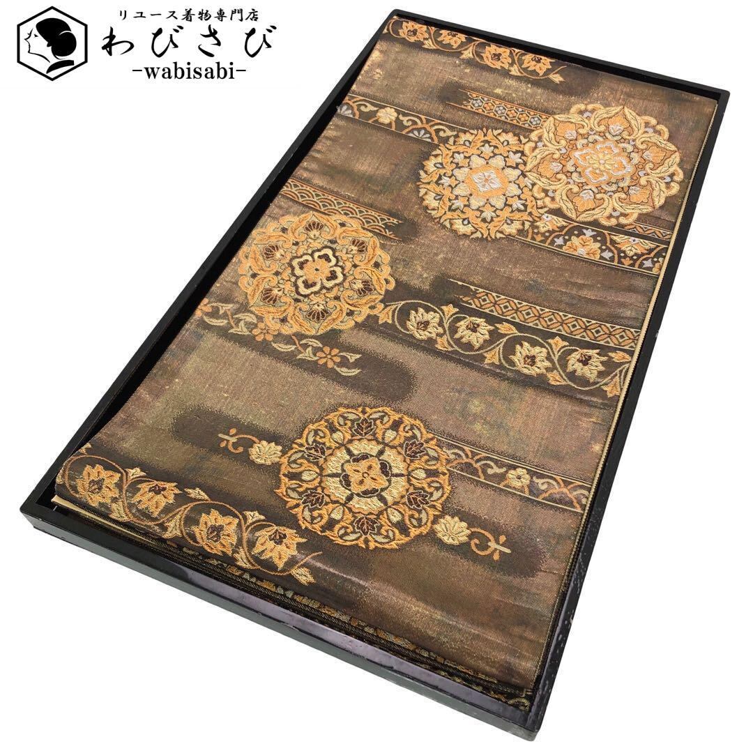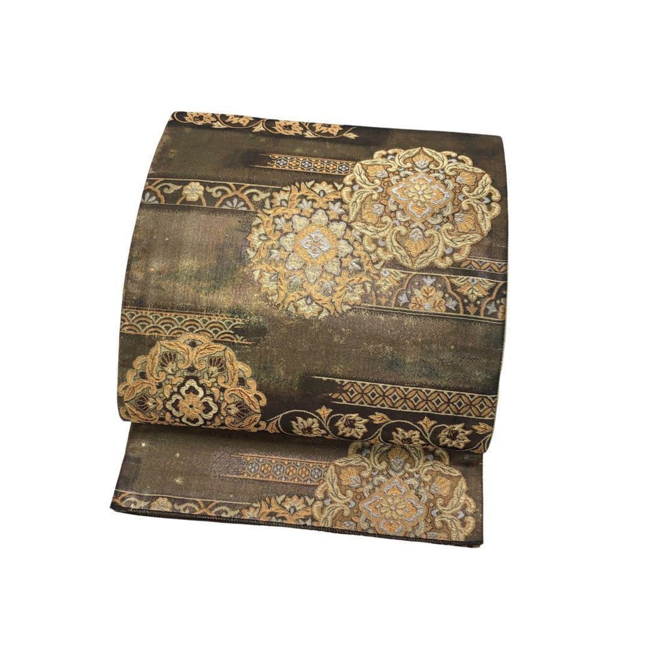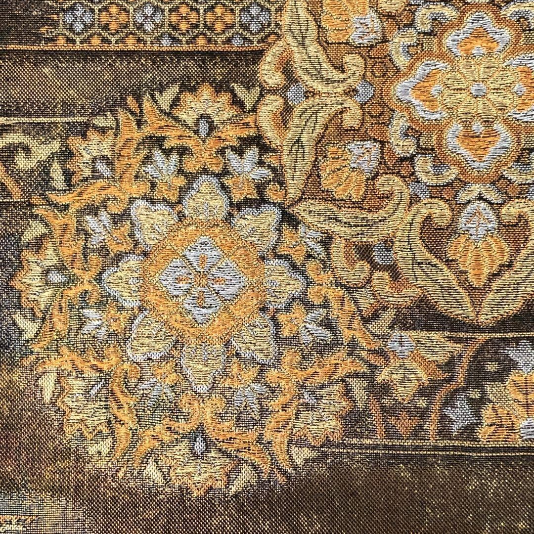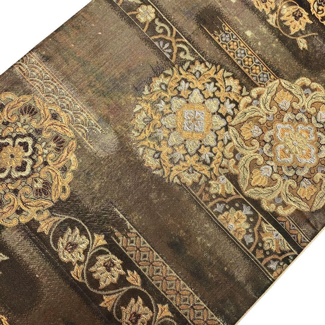 団栗色の落ち着きのあるお色味に金銀糸を使った美しい華模様の柄裄がデザインされた素敵なお品でございます。