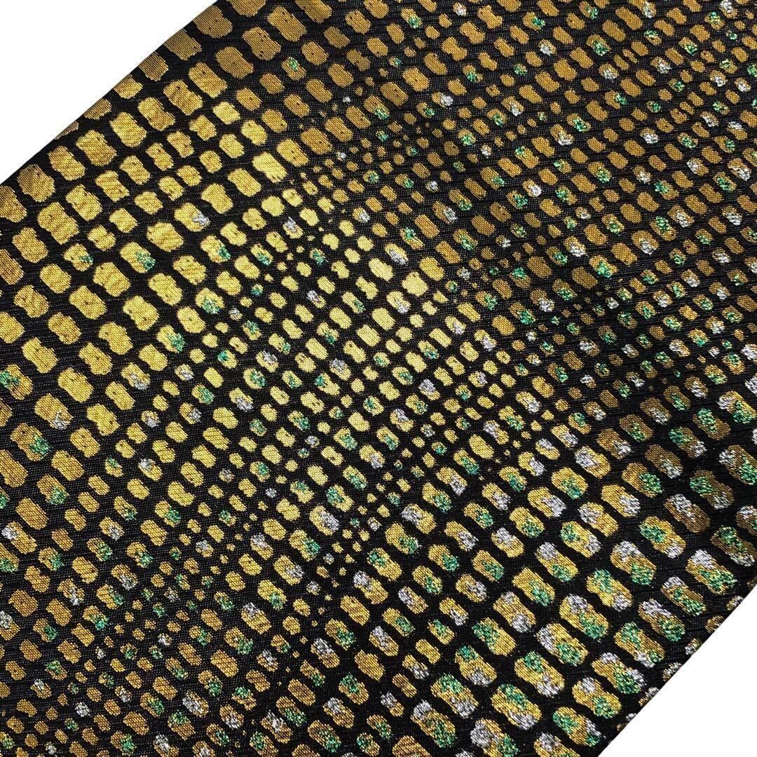 黒色のお色味に煌びやかな曲線模様の柄裄がデザインされた素敵なお品でございます。