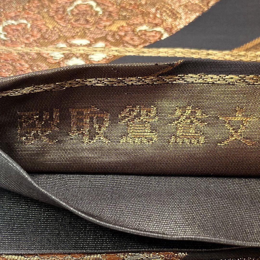 少し落ち着きのある金色ベースのお色味に華柄模様に鴛鴦、紗綾形模様などがデザインされた素敵な柄裄のお品でございます。