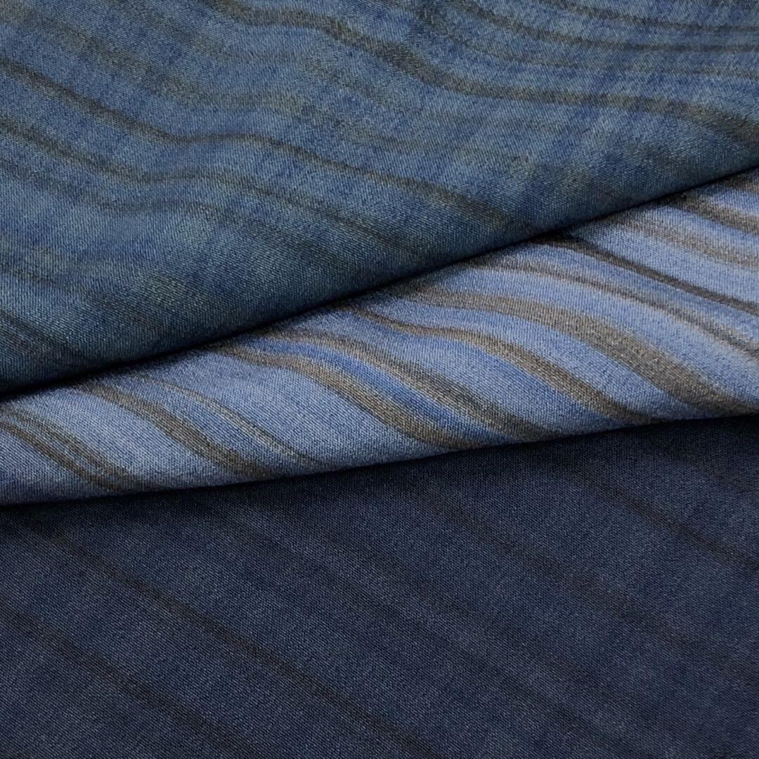 韓藍色ベースのグラデーションのお色味、横縞模様がデザインされた素敵なお品でございます。