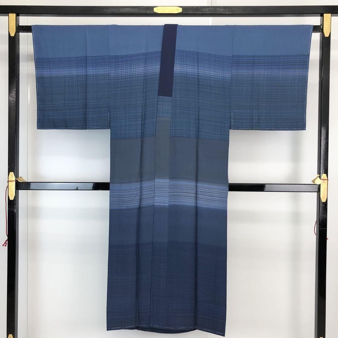 男襦袢 長襦袢 男物 横縞模様 グラデーション 幹藍色 U-1506 着物 きもの kimono 和服 和装 中古 リサイクル着物 【送料無料】