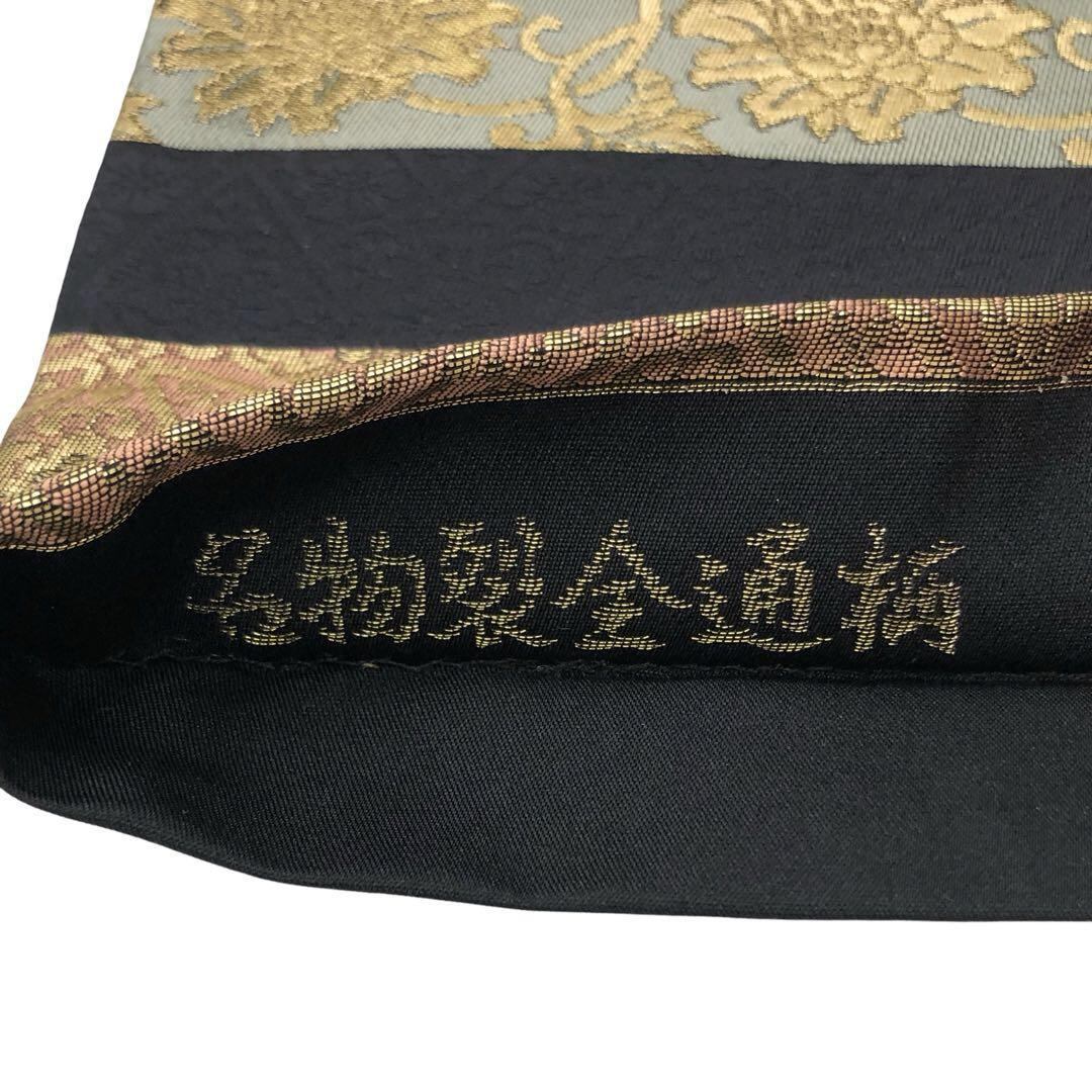 袋帯 名物裂全通柄 横段模様 花兎 花唐草 花七宝繋ぎ 黒色 金糸 O-4688 着物 きもの kimono 和服 和装 中古 リサイクル着物 【送料無料】