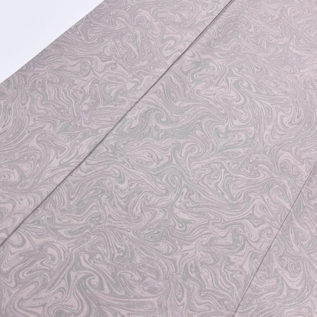 灰桜色ベースの品のあるお色味の縮緬に上品な墨流し模様がデザインされた雰囲気の良い素敵な柄裄のお品でございます。