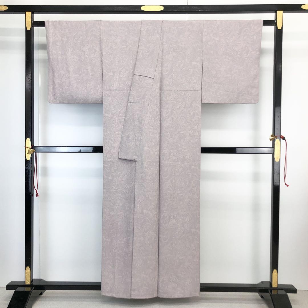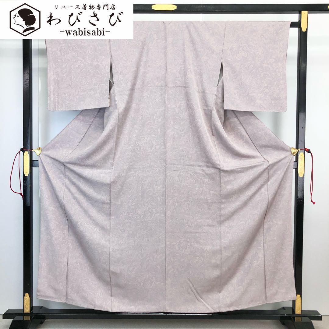 小紋 上品な墨流し 灰桜色 縮緬 K-4414 着物 きもの kimono 和服 和装 中古 リサイクル着物 【送料無料】