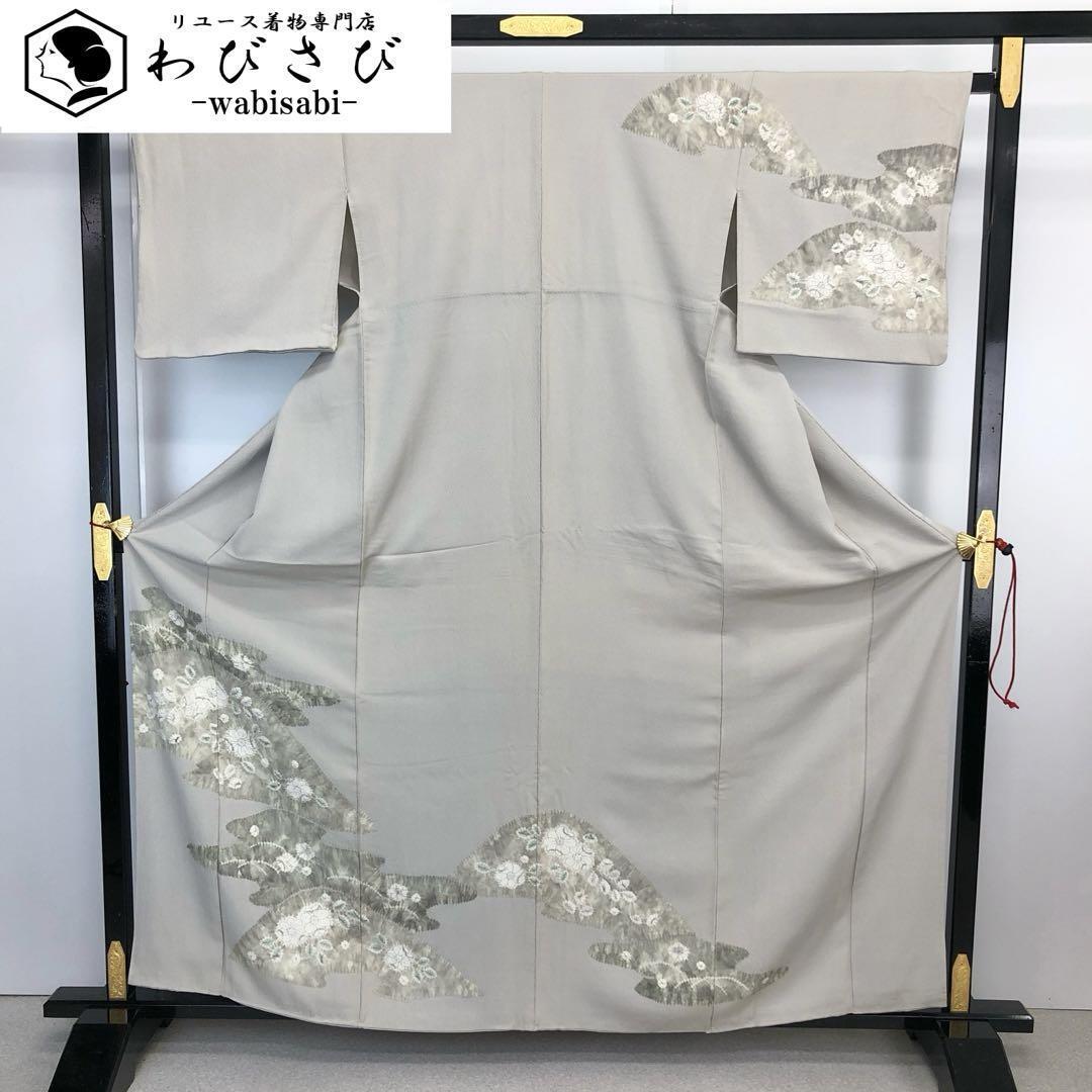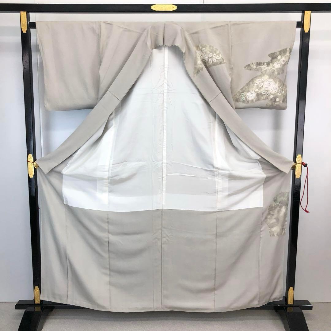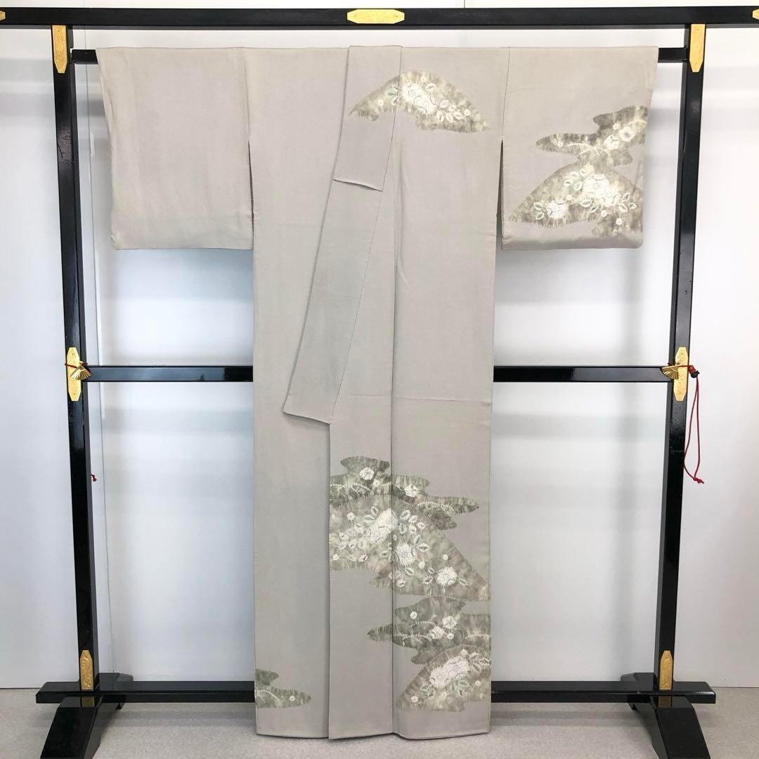 灰白色の品のある縮緬地に上品な辻が花絞りの柄裄がデザインされた素敵なお品でございます。