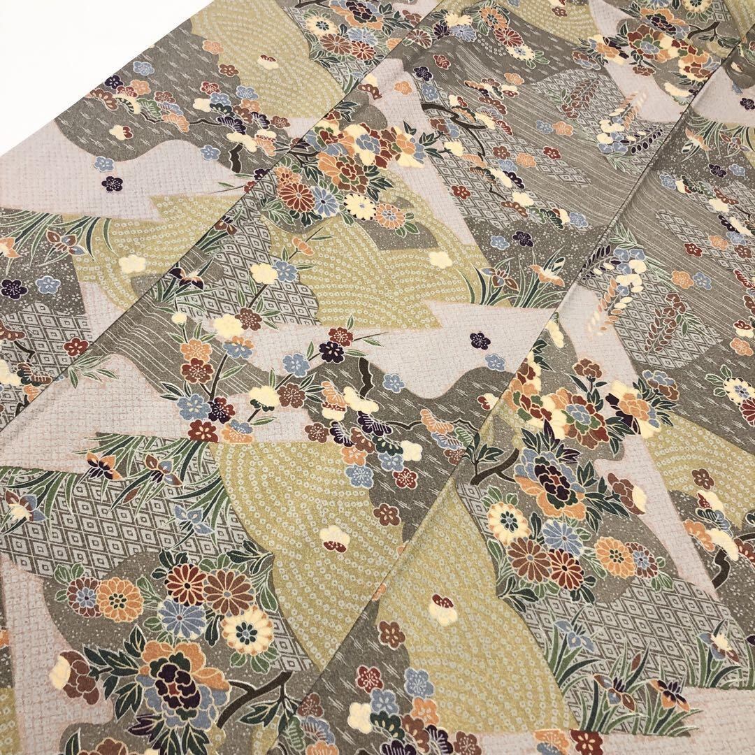 小紋 四季の花模様 鹿の子模様 縮緬 K-4420 着物 きもの kimono 和服 和装 中古 リサイクル着物 【送料無料】